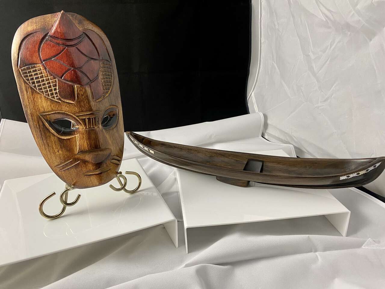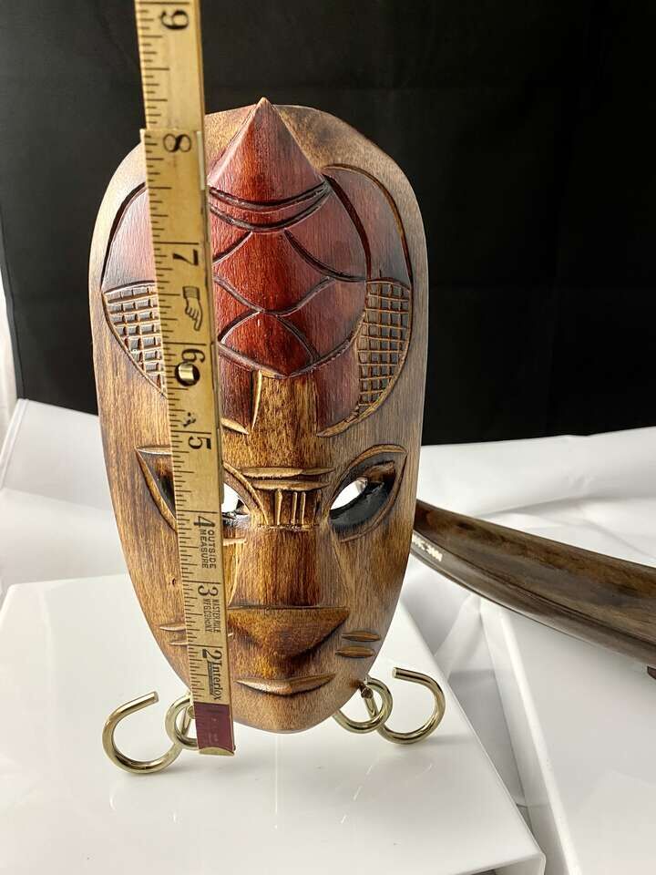 LIKE NEW - Wood Carved Mask W/ Red Turtle - Fiji Handcrafted Art - I have more listings from Fiji - C PICS. The Hand carved canoe with silver incerts is also for sale. I just haven't listed it yet.