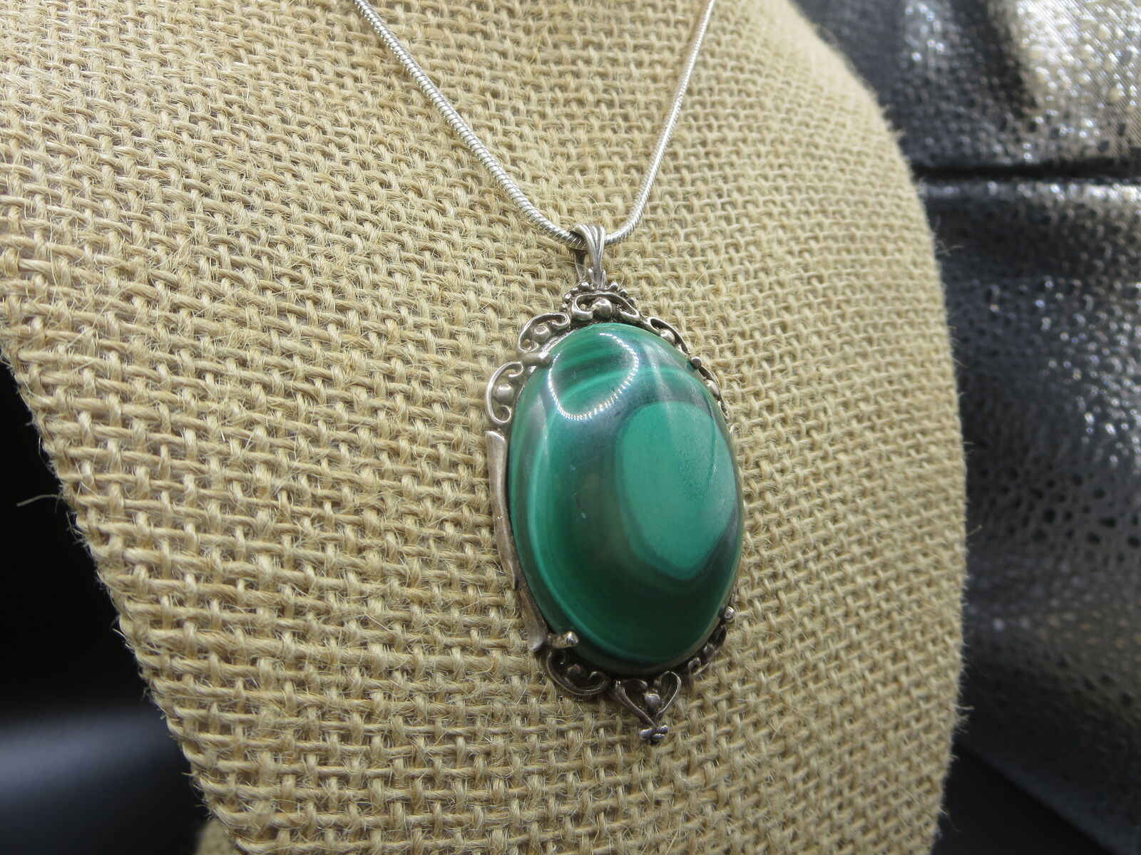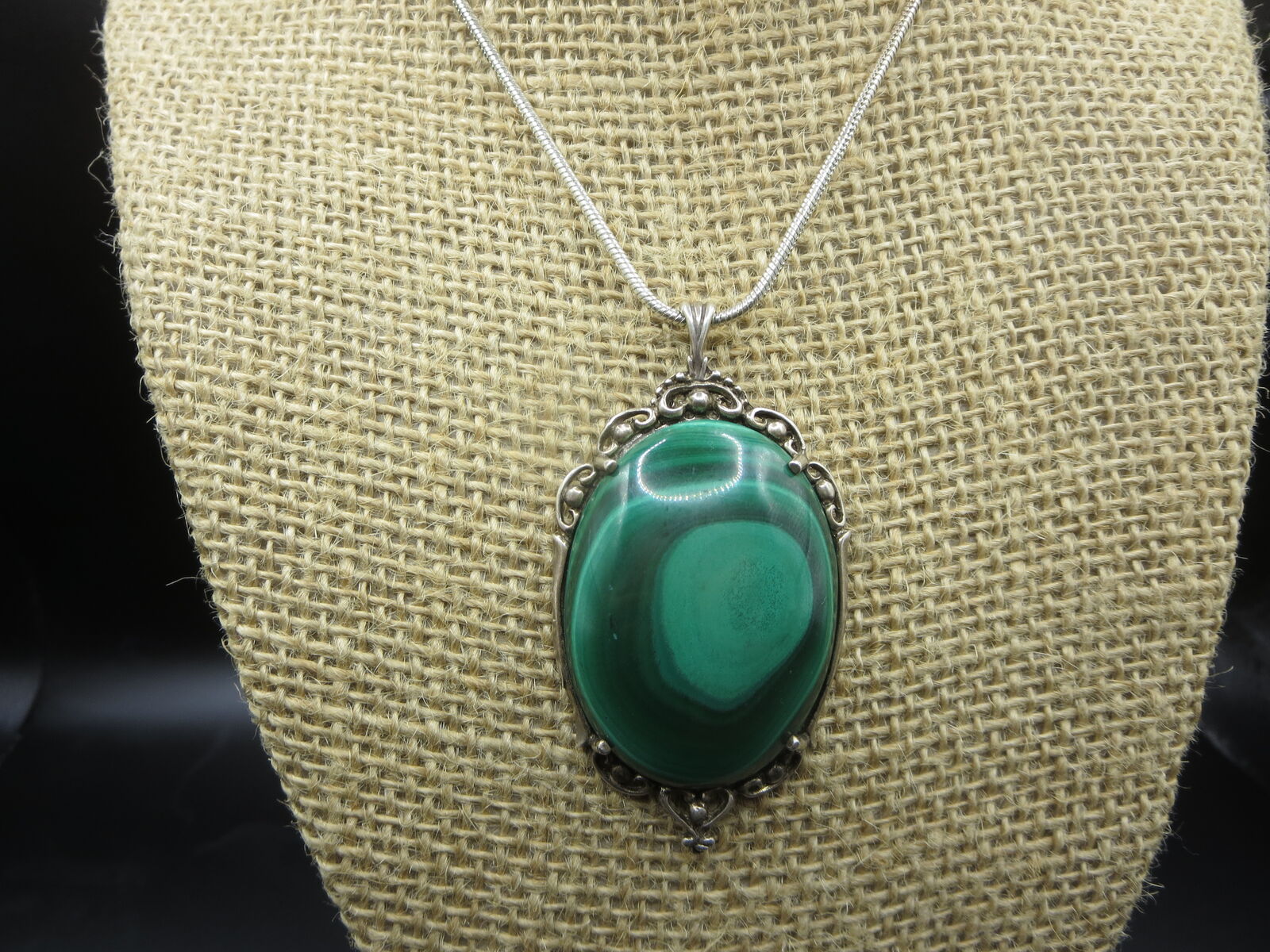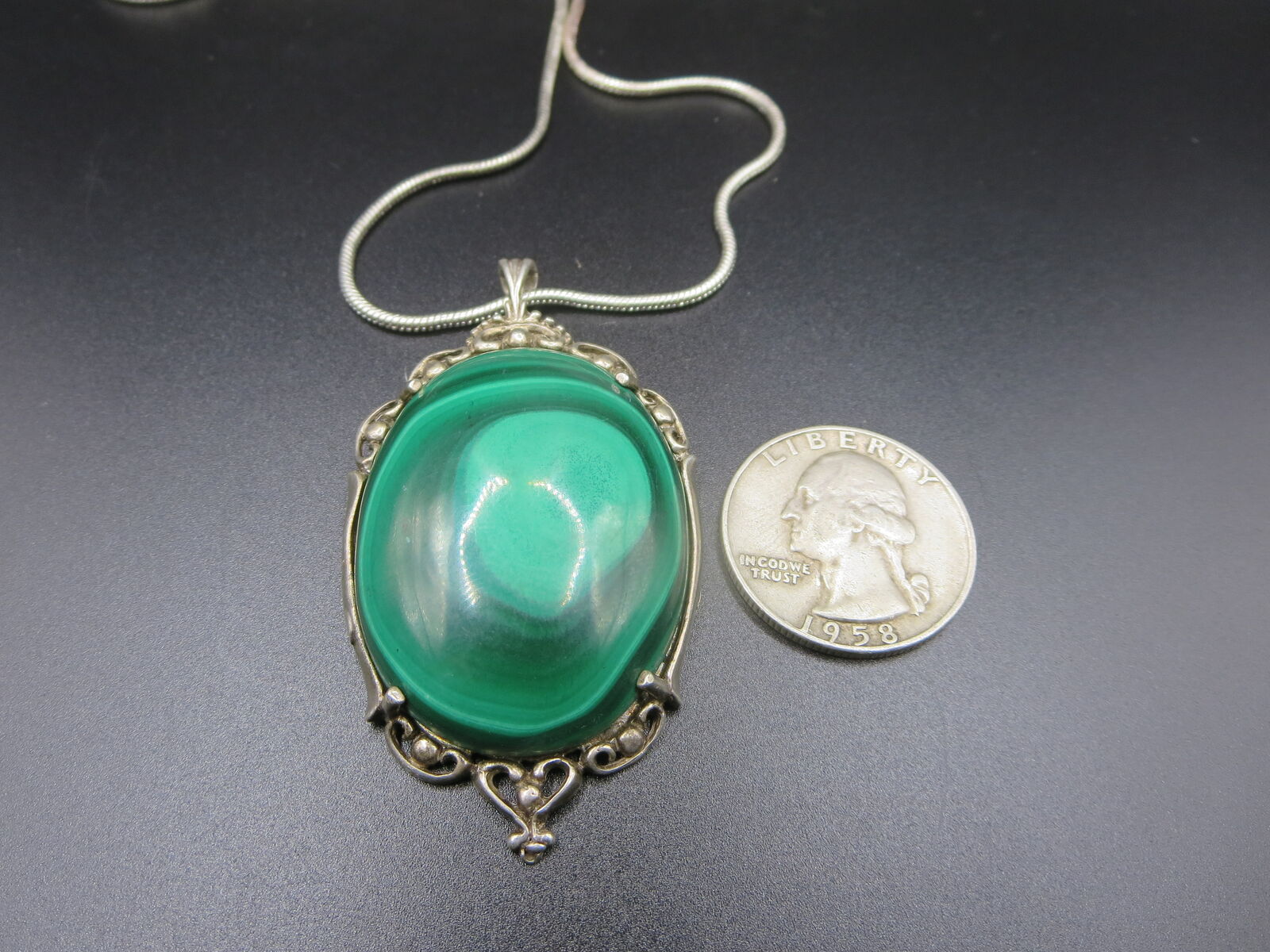I have a. vintage sterling silver huge green malachite pendant NSN stamp for sale call or text only thanks for looking D.