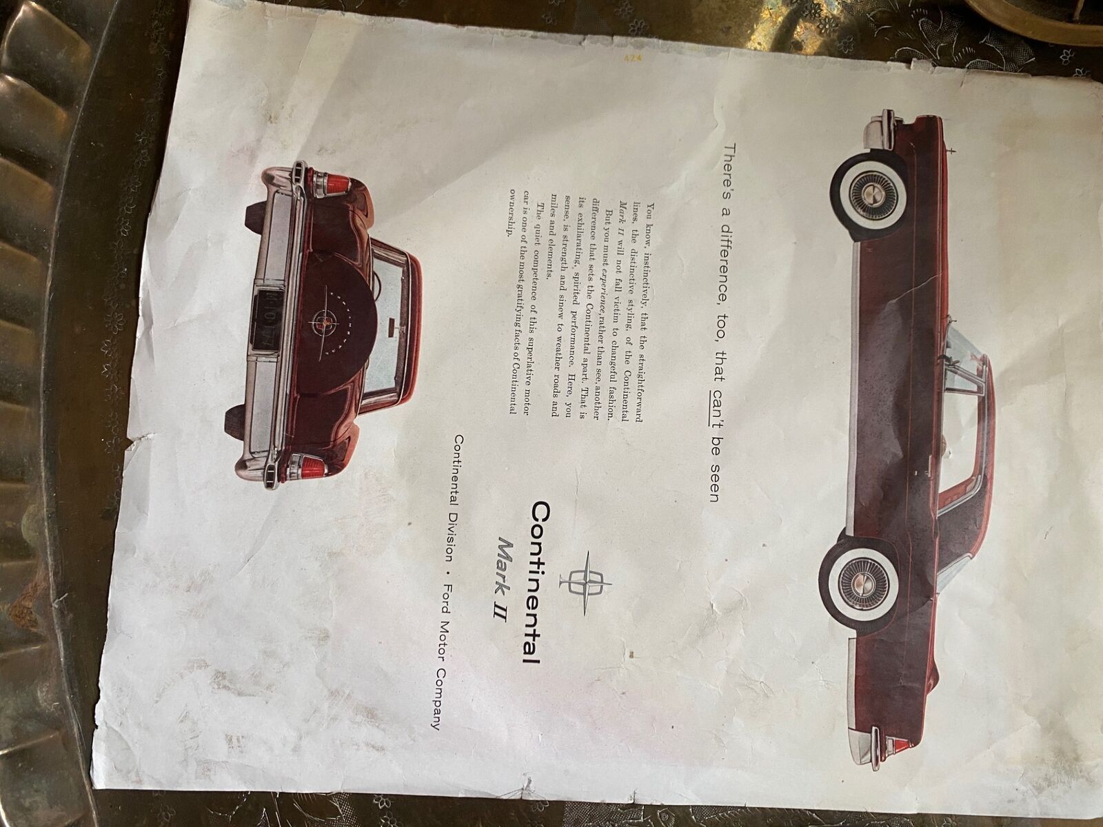1956 magazine advertisement. coca cola on one side an 1956 Continental Mark II on the other. needs to be framed. good shape. tex if interested