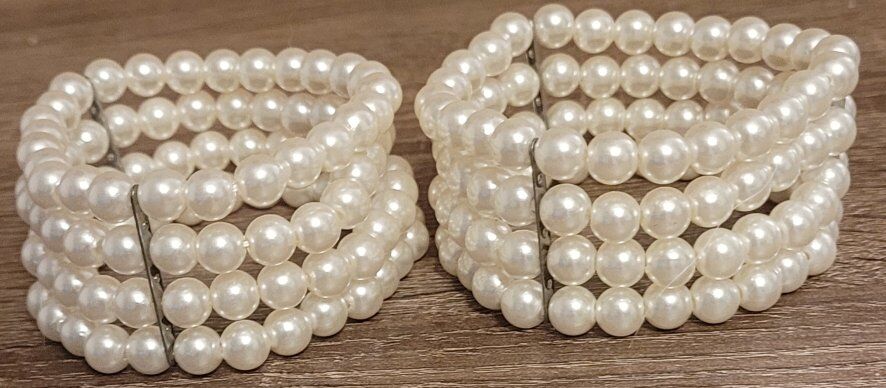 Women's Stretch Cuff Bracelet Soft White Imitation Pearls Appx 8 in