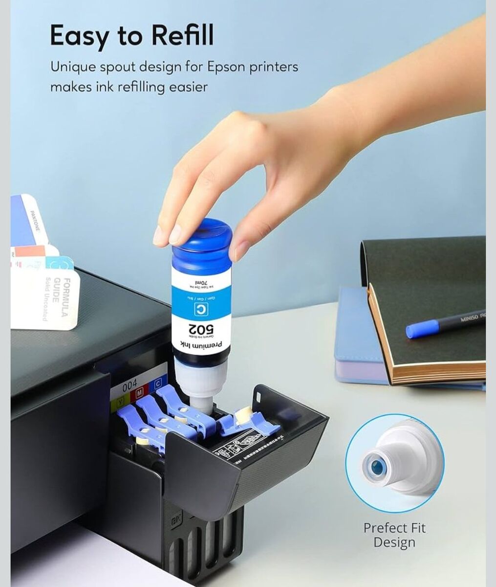 Compatible 502 Ink Bottles Replacement for Epson Compatible 502 Ink Refill Bottles ( Not Sublimation Ink ) Use for ET-2850 ET-3830 ET-3850, 4 Bottles. Brand new. cash only please
