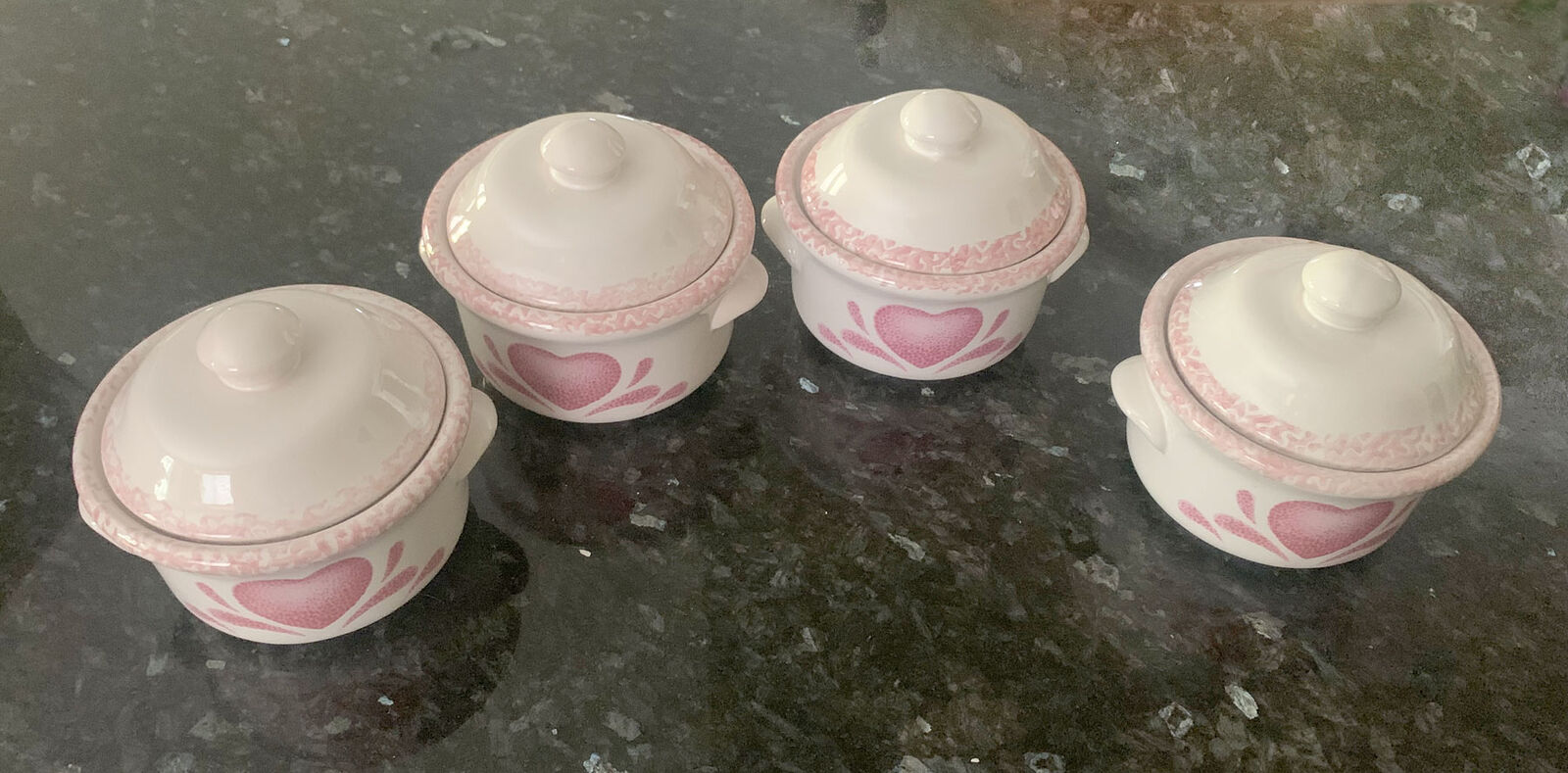 PayPalFour 16oz. Ceramic Stoneware bowls with lids. Perfect for French Onion Soup or chili. Or use them as centerpieces for your holiday table! So cute! Pick up in Sandy