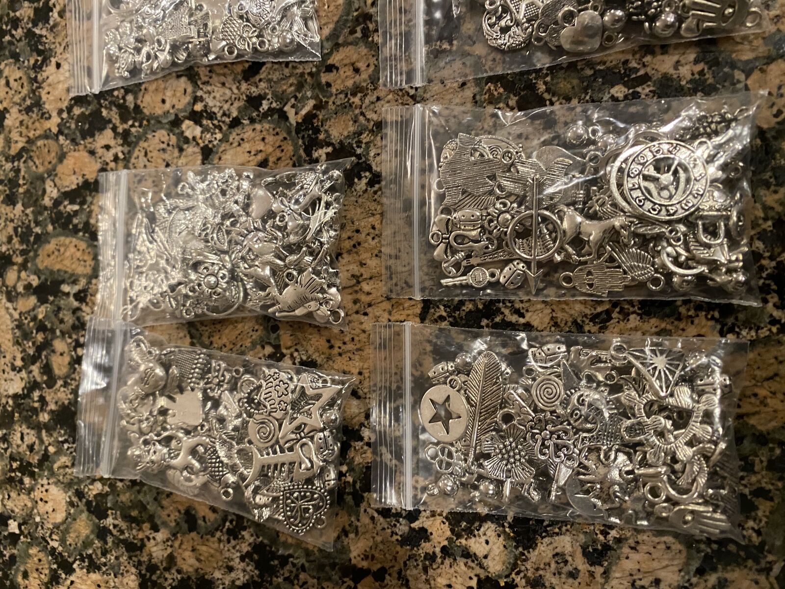 VenmoNEW - 50+ Assorted Silver Charms - 2/$15 You get to pick your bags - See Photos For Details. If you don't want two sets they are just $8 each. I'm also selling the organza necklaces pictured here in another listing, also 2/$15. You can get one of each for $15. Make fun Gifts. THESE ARE SILVER IN COLOR, NOT IN CONTENT FOR THIS PRICE!!!
