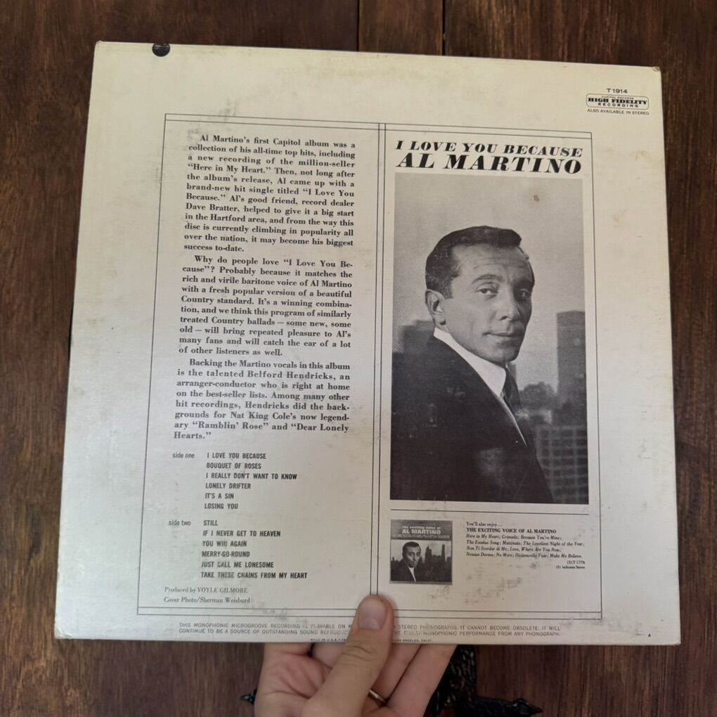 Al Martino: I Love You Because Vinyl Record does have some light scratches