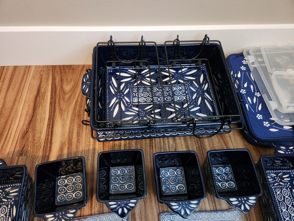 Venmo9-piece ceramic bakeware set. The easy-to-grab upswept handles give you a good grip for bringing each piece from oven to table, while the bold colors and beautiful designs will make you proud of the presentation for delicious casseroles, decadent desserts, and any other culinary creation on the menu. From Temp-tations® Ovenware.