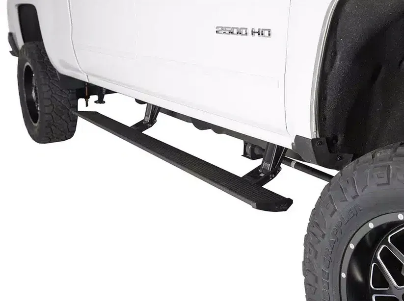 AMP Research PowerStep Plug-N-Play 2019 - 2022 Chevrolet Silverado & GMC Sierra Retractable Electric Steps with LED Step Lights.