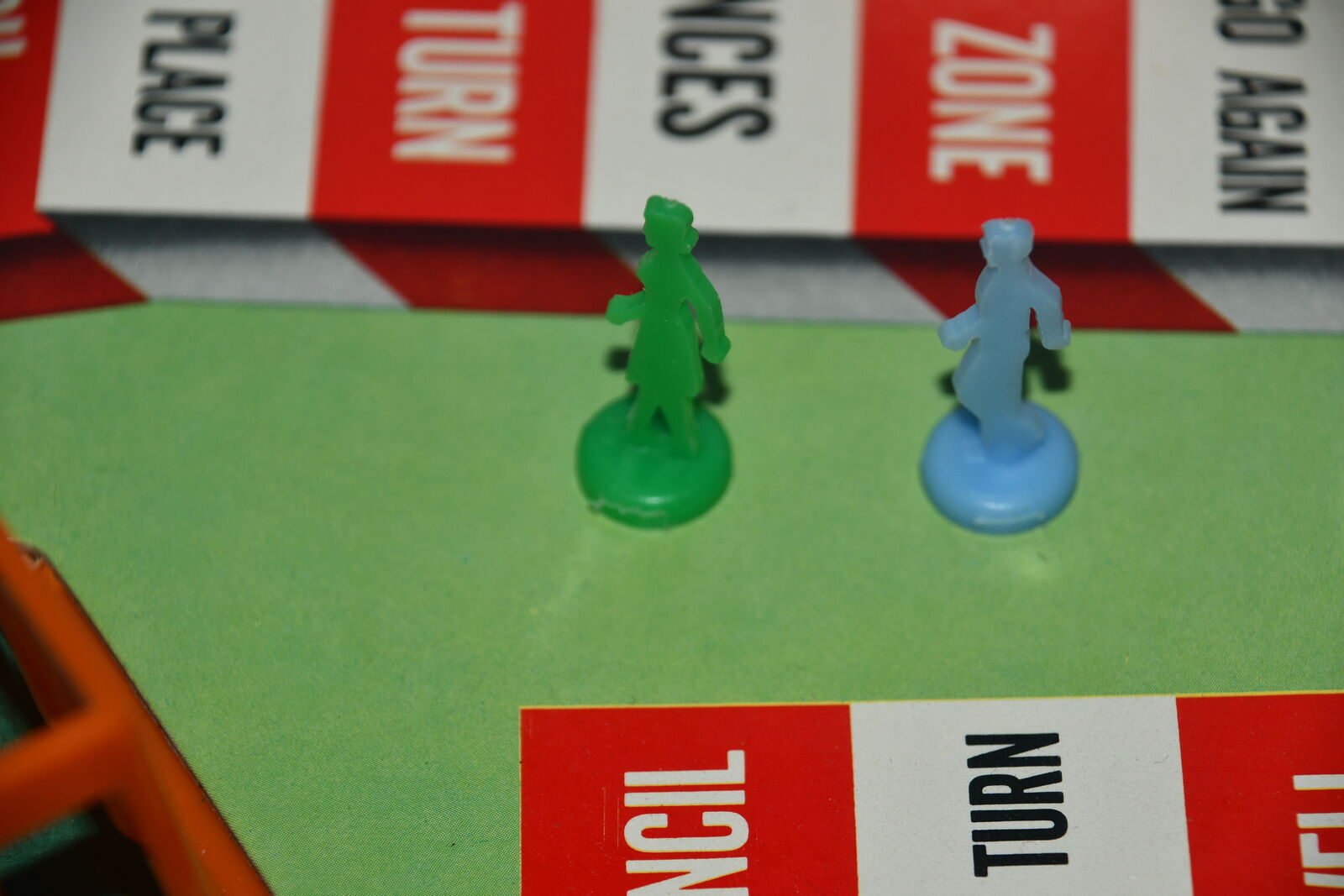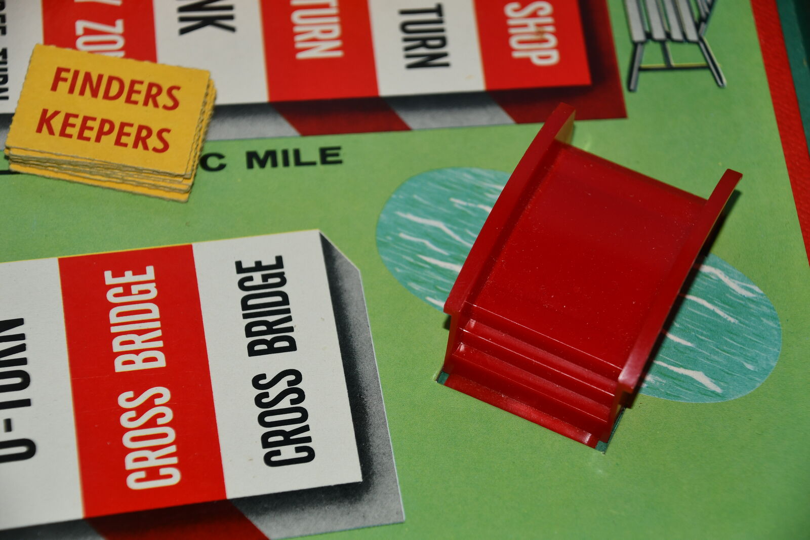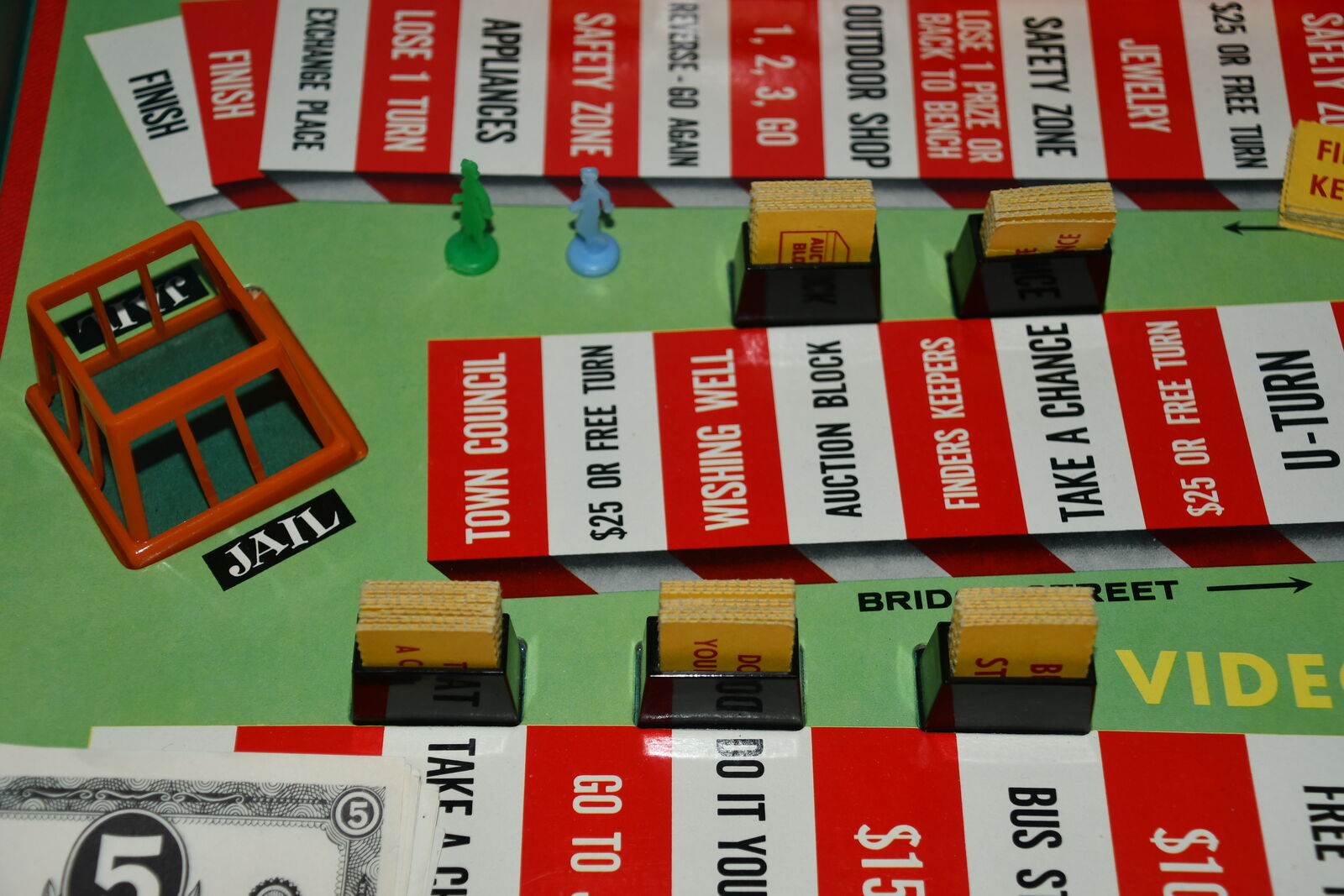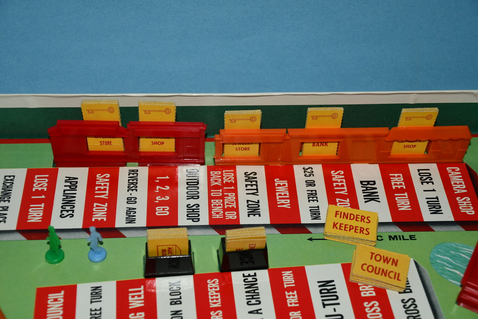 This VINTAGE 1962 "VIDEO VILLAGE" BOARD GAME is from a smoke free home. I believe it is complete except for the money. It has players, cards, bridge, jail, dice.... It doesn't give a listing of the pieces. Questions??? Please ask. We are located in Plain City. Cash only please.