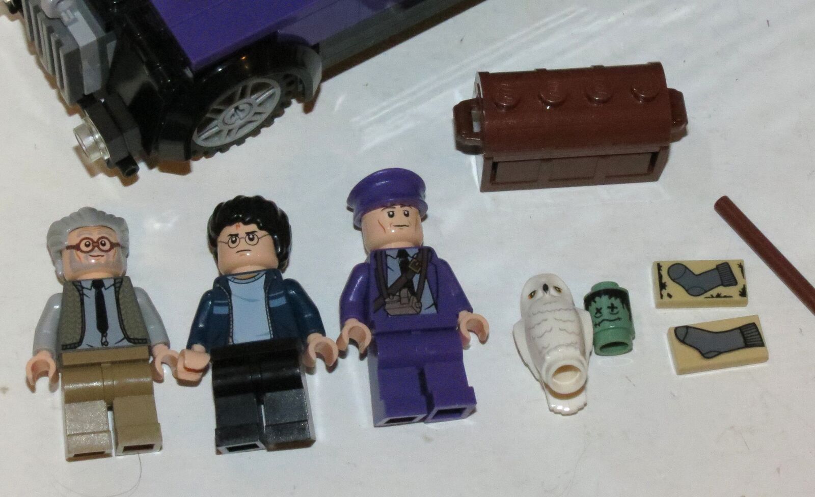 VenmoHarry Potter Knight's Bus set #4866 from 2011, with Harry, Ernie Prang, Stanley Shunpike, shrunken head, hedwig the owl. One of the sock tiles has been replaced with a sock tile from a different set - won't notice the difference unless you look closely. Everything else there, 100% complete with stickers and in great shape. No box or manual.