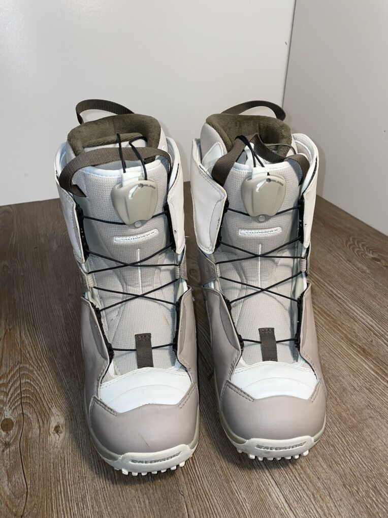 Here we have a very nice pair of Salomon Vigil snowboard boots. Size 8 and in good condition. Call or Text