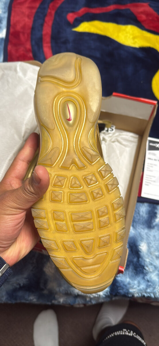 Selling my brand new gold colored Air Max 97s that I bought off of stock x a few years ago! Asking $200 obo! Willing to negotiate on price! Located in Roy but I work in Salt Lake City so I can bring them with me if interested ! Size 10!