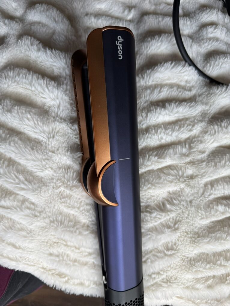 Dyson Airstrait™ dryer and straightener (Prussian Blue/Rich Copper) Straighten as you dry. 2x the shine. It is almost new and amazing because it protects your hair from heat damage. I am selling it because I do not use it as much as I should (I am used to the regular dryer and flat iron)