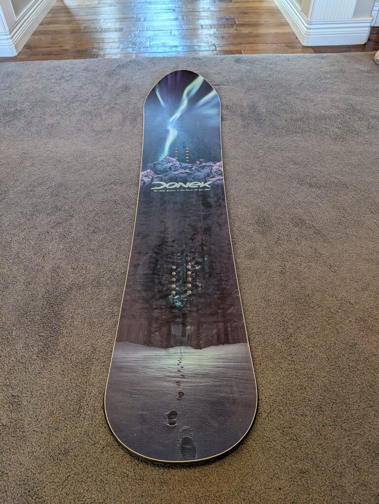 VenmoAs I have been practicing I am upgrading to a wider board! I paid $1,025.00 including taxes and shipping! $600 and it's yours! This board is great In Powder and an Amazing carving board! The top sheet is a beautiful image of the northern lights with footprints, a forest and mountains!