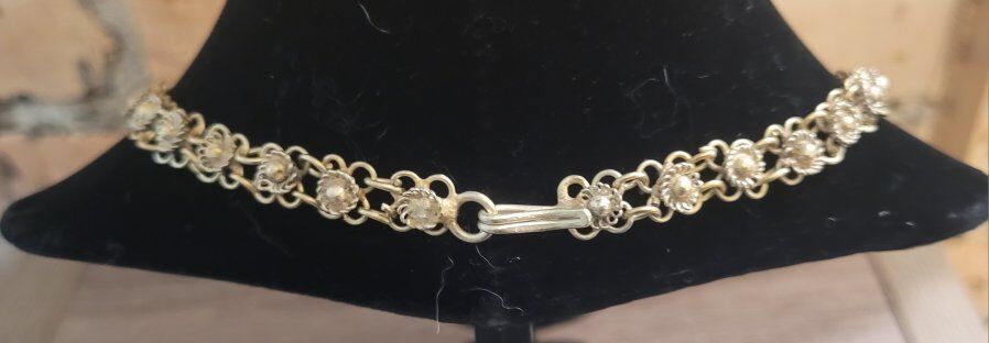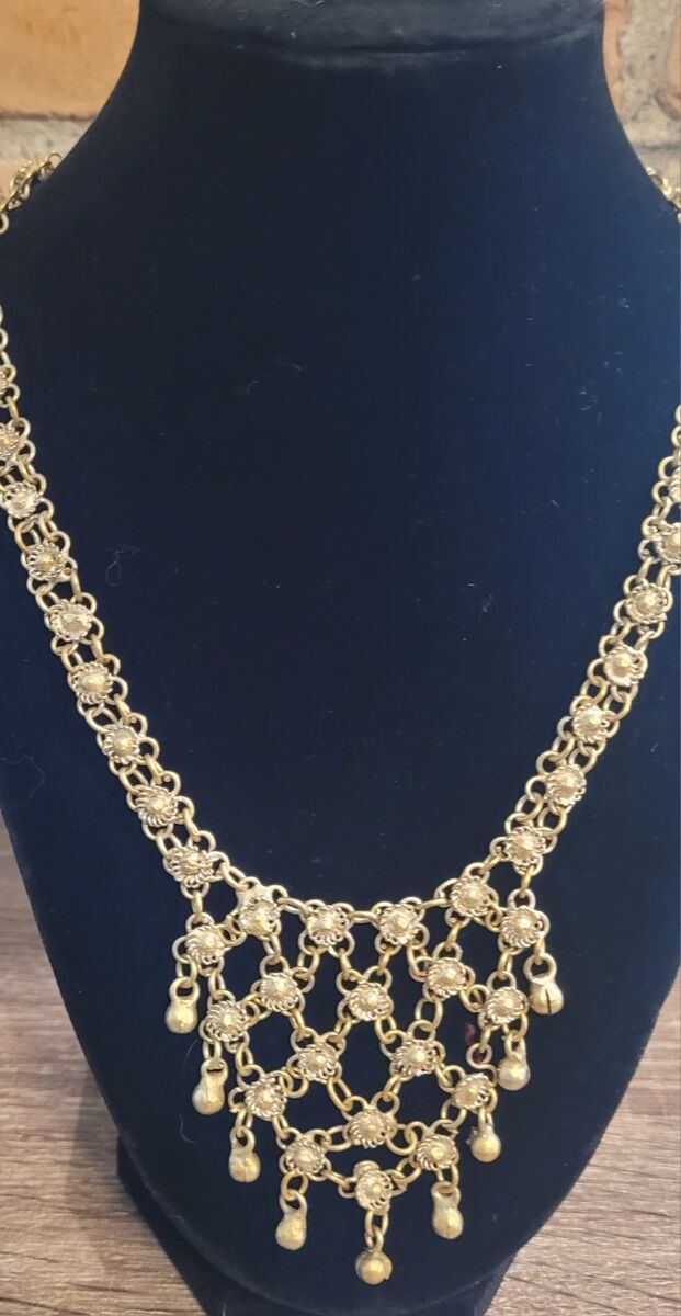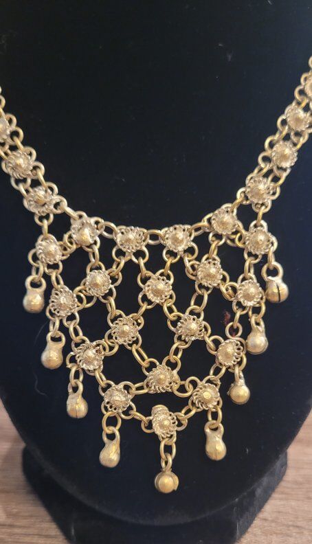 Vintage tribal chainmail bib necklace with floral patterns and dangles