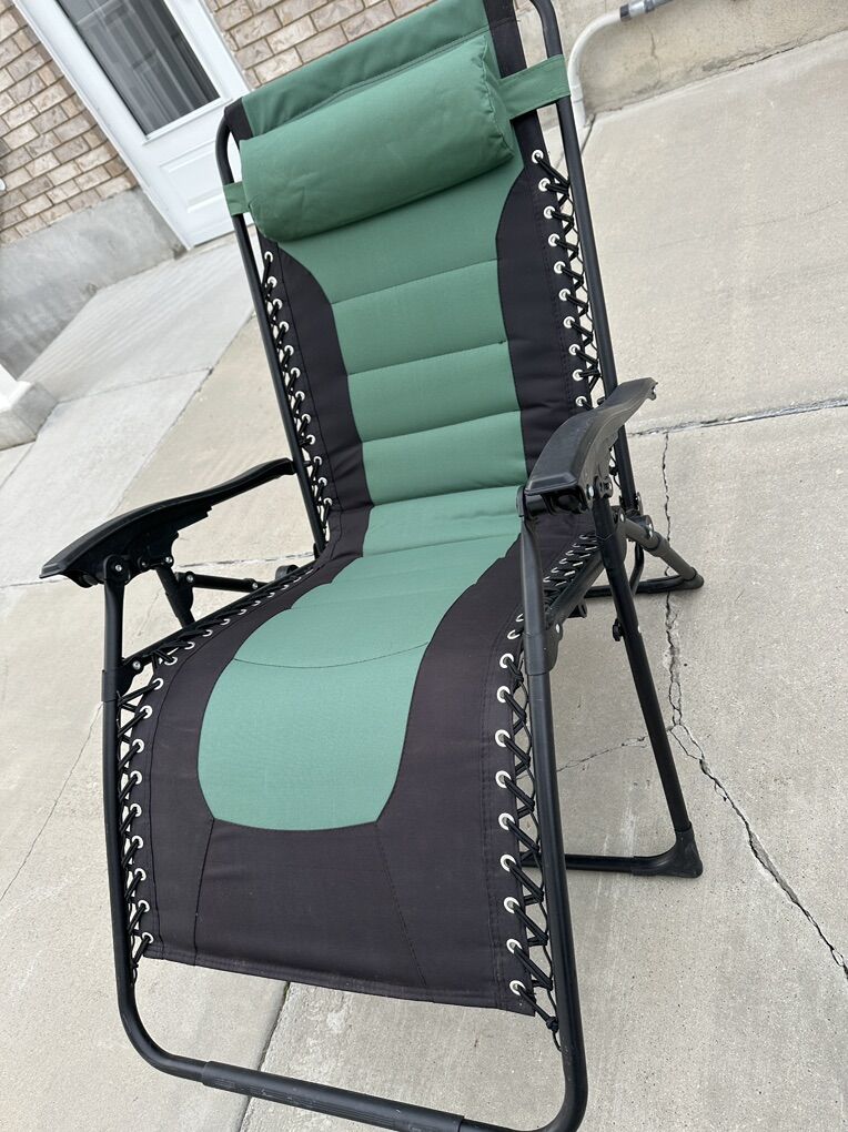 VenmoNice Longe Chair Comes With Pillow & Grat Condition. EXTRA-WIDE SEATING: Enjoy plenty of space to relax with an extra-wide 24-inch seat, a set of armrests, and a headrest for added comfort LOCKABLE RECLINING SYSTEM: Smoothly glide into an ergonomic zero-gravity position with a system of locks and elastic bands for extra support WEATHER-RESISTANT MATERIALS: UV- and weather-resistant textilene fabric combined with a steel frame and replaceable elastic bands provide years of superior seating TAKE IT ON THE GO: A lightweight, folding design makes this chair easy to enjoy at home, the beach, the park, or your next tailgate Weight Capacity: 250 lbs See Less