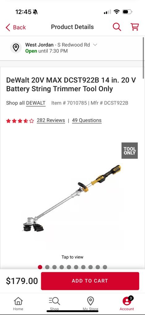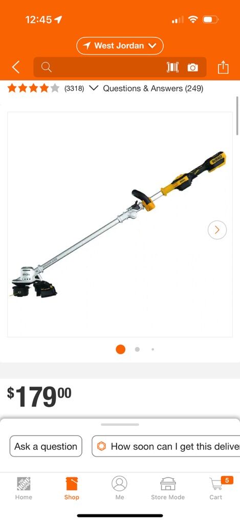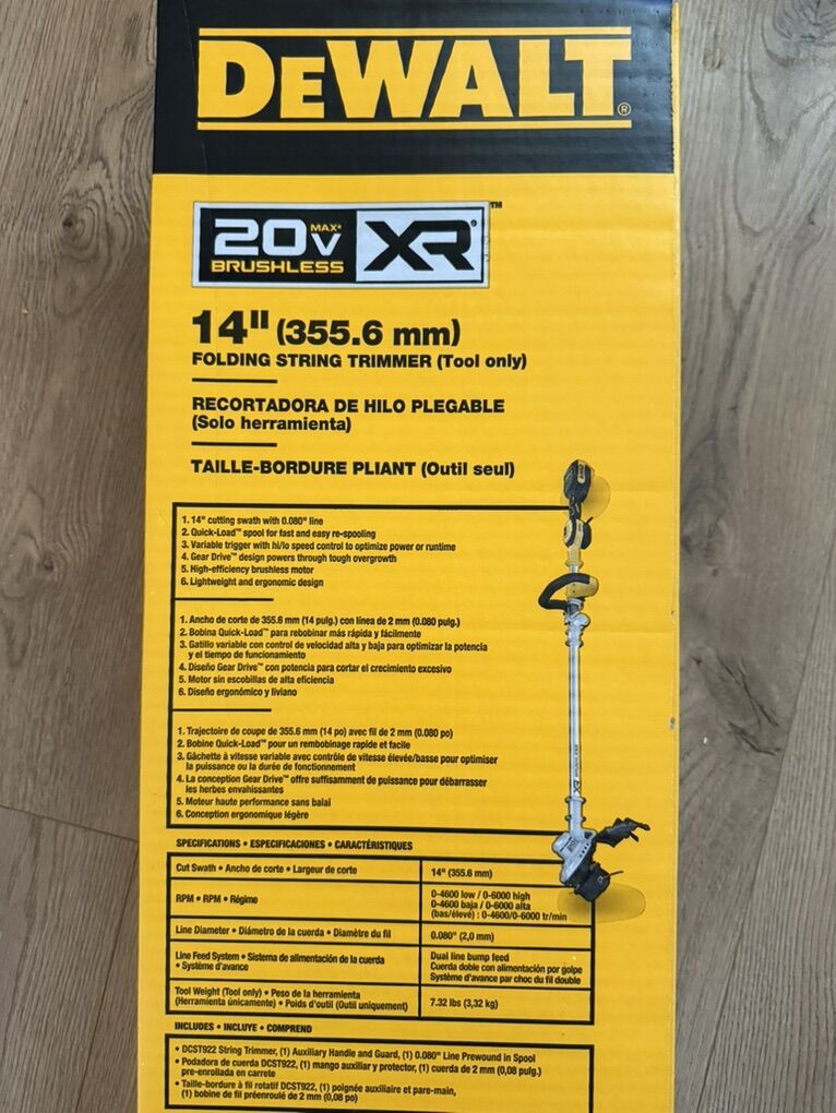 VenmoBrand new still in box. Dewalt 20v string trimmer. Weed whacker. Able to easily fold in half for easy storage. XR so heavy duty. Model DCST922B Home Depot sells for $179 Tool only. No battery or charger Check out my other Dewalt Listings