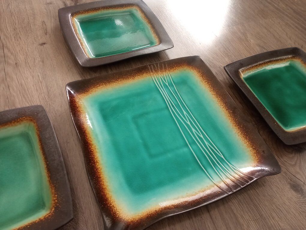 VenmoI have 1 square dinner plates and 3 salad plates of a similar design--teal green & brown. One of the salad plates has a small crack in it. These are really pretty but I have too many dishes. So I am selling these as a set for $5. Maybe they match someone else's dishes? Cash or Venmo. Text if interested.