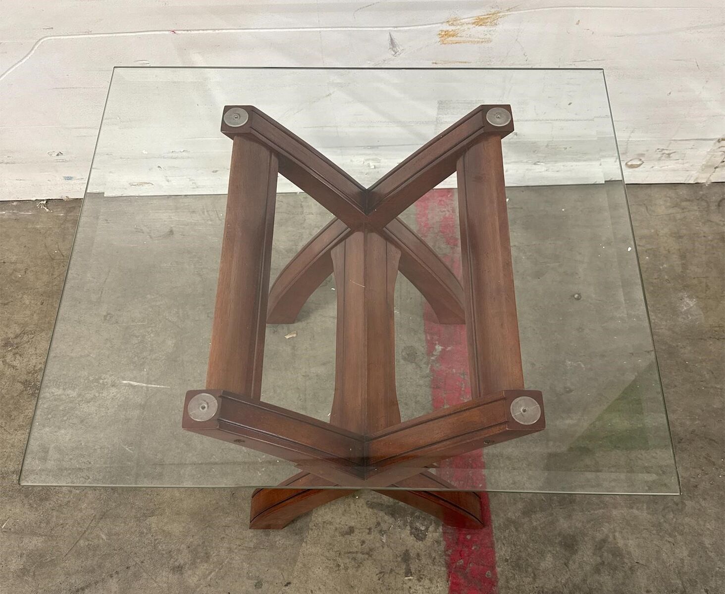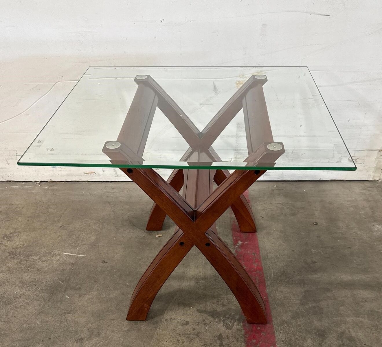 VenmoBrand new, still in the box Retail price is: $200.00 My price: $60 This is a brand new, elegant end table that features a sleek glass top supported by a sturdy, solid wood base with a rich, dark stain. The table measures 28 inches wide, 24 inches deep, and 25 inches tall, Perfect addition to any living space. The unique design of the base adds a modern touch while ensuring durability and stability. Ideal for showcasing decorative items or providing a convenient surface for drinks and snacks. Lot # 247m 9272025 2175