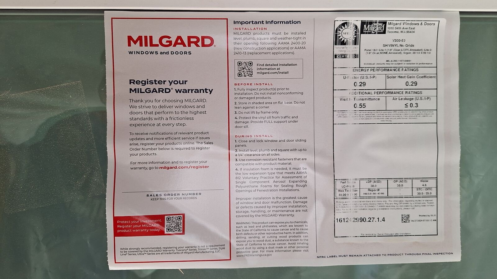 *** GLASS *** Glazing Type - Insulated, Dual, Glass Tint - Clear, Low-E, Argon Gas. Glass Strength - DSB, Ultra Spacer