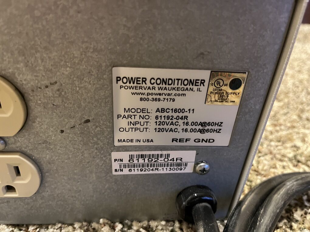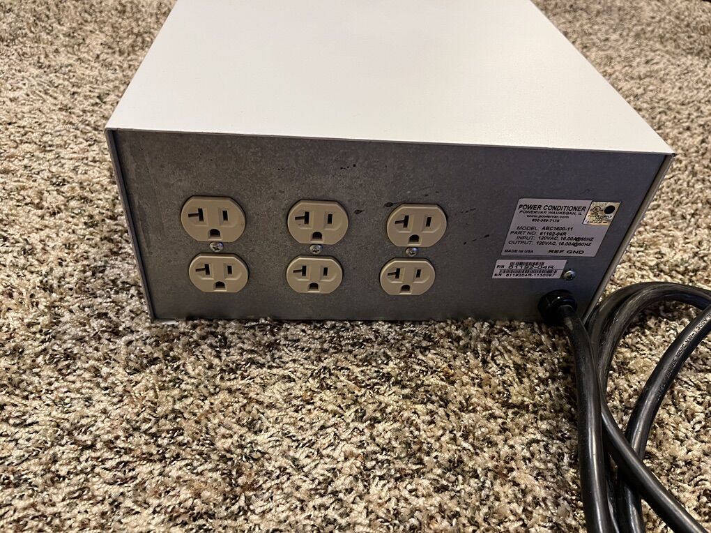 This is a heavy duty power conditioner module with 6 outlets, rated for 16 Amps and 1920 volt amps for both input and output for your house or business equipment. It plugs into at 20 amp 120 V input. It protects your equpiment from power surges. It is from Powervar model ABC1600-11. It is from a medical clinic that no longer needs it. Nothing wrong with it, just not needed any more. I have two of them if you need a better deal.