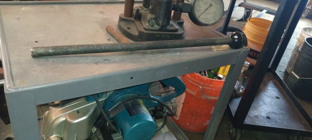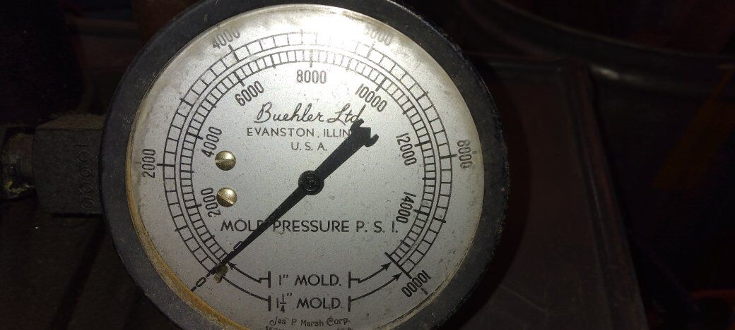 Made in USA Buehler table top laboratory press with pressure indicator in a good condition, no leaks. I live in Petersboro west of Logan.