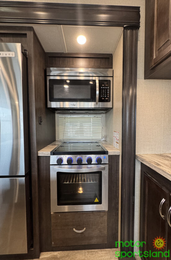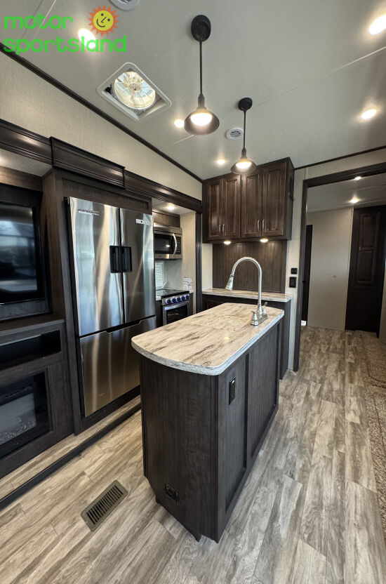 Family-Friendly Layout: With a spacious bunkhouse, this fifth wheel comfortably sleeps multiple family members or guests, ensuring everyone has their own space. Luxurious Comfort: Enjoy a master suite with a cozy queen bed, ample storage, and a private retreat for ultimate relaxation after a day of exploration. Modern Kitchen: Equipped with high-end appliances, a large refrigerator, and plenty of counter space, making meal prep a breeze for family gatherings. Entertainment Hub: A large living area with plush seating and a state-of-the-art entertainment system keeps everyone entertained on rainy days. Outdoor Convenience: An exterior kitchen and awning create the perfect setup for family BBQs and outdoor fun.
