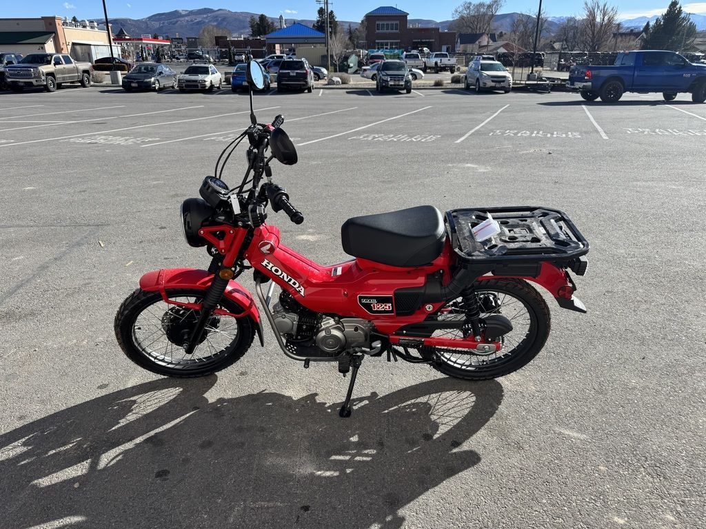 $4,600 OUT THE DOOR NO FREIGHT OR SETUP 2025 Honda® Trail125 Step up your explorer game Inspired by the iconic Trail 90 and Trail 110, the Trail125 combines retro charm with modern tech, now in Glowing Red and Pearl Smoky Gray. Our rugged 125cc fuel-injected engine, front-wheel ABS, and versatile rear cargo rack deliver easy handling and endless fun, making it the perfect two-wheeled miniMOTO fun machine. Features may include: Easy to park Because of its compact size, parking in the city is easy, as is loading and unloading it from a vehicle or storing it when you're not riding. Hydraulic disc brakes Single-disc brakes – 220mm front and 190mm rear – combine for excellent stopping power. And the increased safety of standard front-wheel ABS gives riders added confidence. Cargo rack Gear up for fun with the large rear cargo rack. Additional cargo racks for the center and above the headlight are available from our accessory line for even more storage so you can prepare for whatever lies ahead.