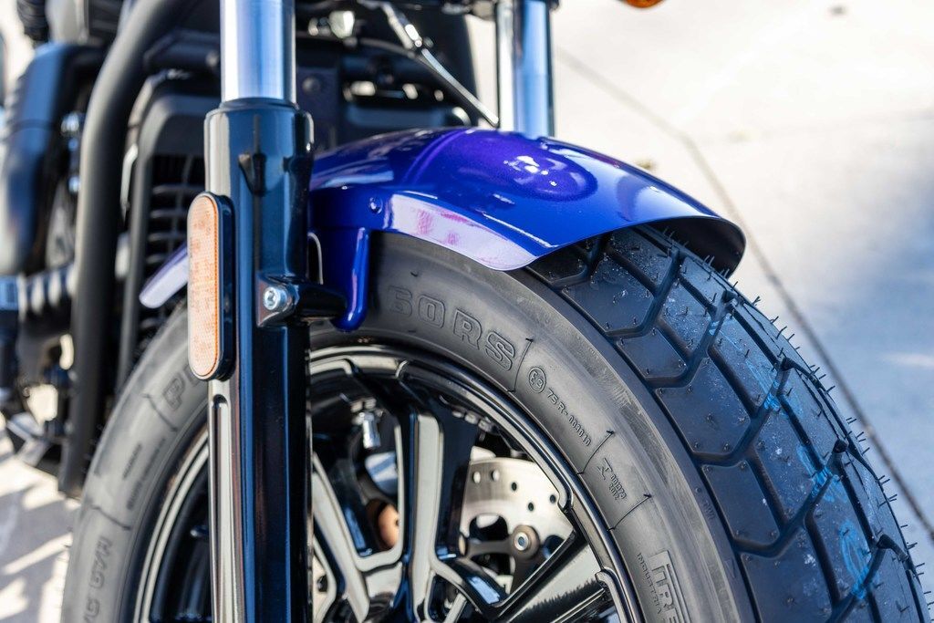 Blacked out front to back with chopped bobber fenders and Headlight Nacelle, it leans hard into a mean bobber vibe.