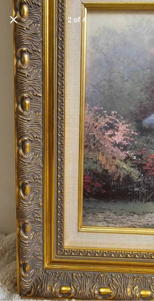 This is a beautiful Kinkade Print on Canvas 19.5"×17.7" in Wooden Frame. No Scratches, perfect Condition. Great Gift for a Kinkade Lover.