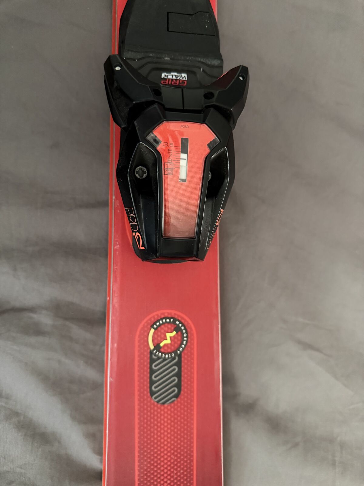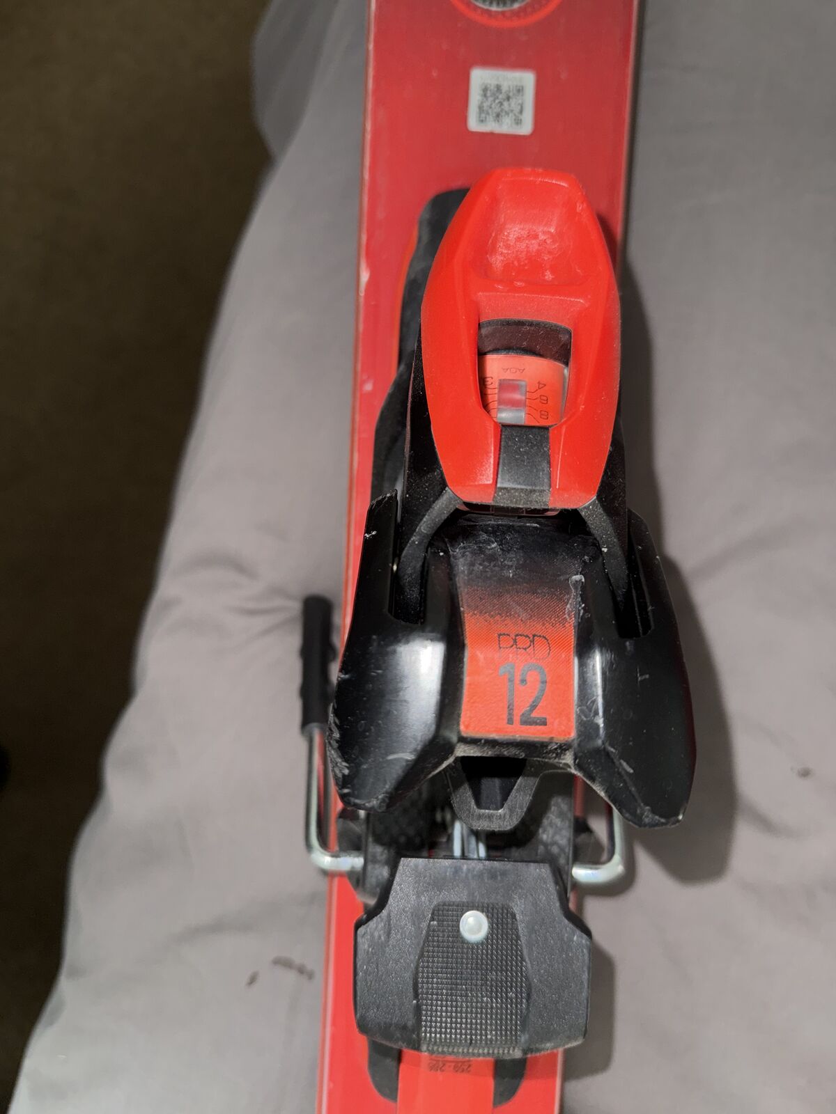 They are two years old and have been skied about 30 days by a me (I'm in my 70s - so easy days). They are in perfect shape and professionally tuned and waxed by Jackson's Base Camp in Park City. The binding are easy adjustable. You will not have to drill new holes (this I gaurantee).