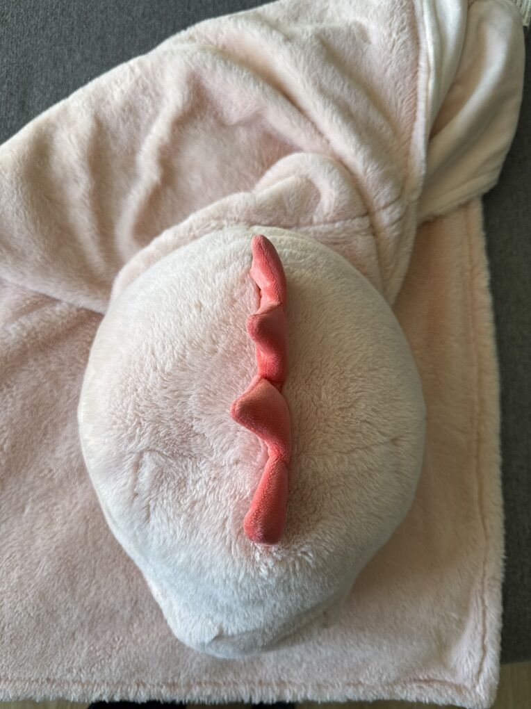 Kids dinosaur hooded blanket in light pink Faux-fur fabric keeps your kiddo warm and comfy 3D dino head with orange spikes, tail and paws add a cute look