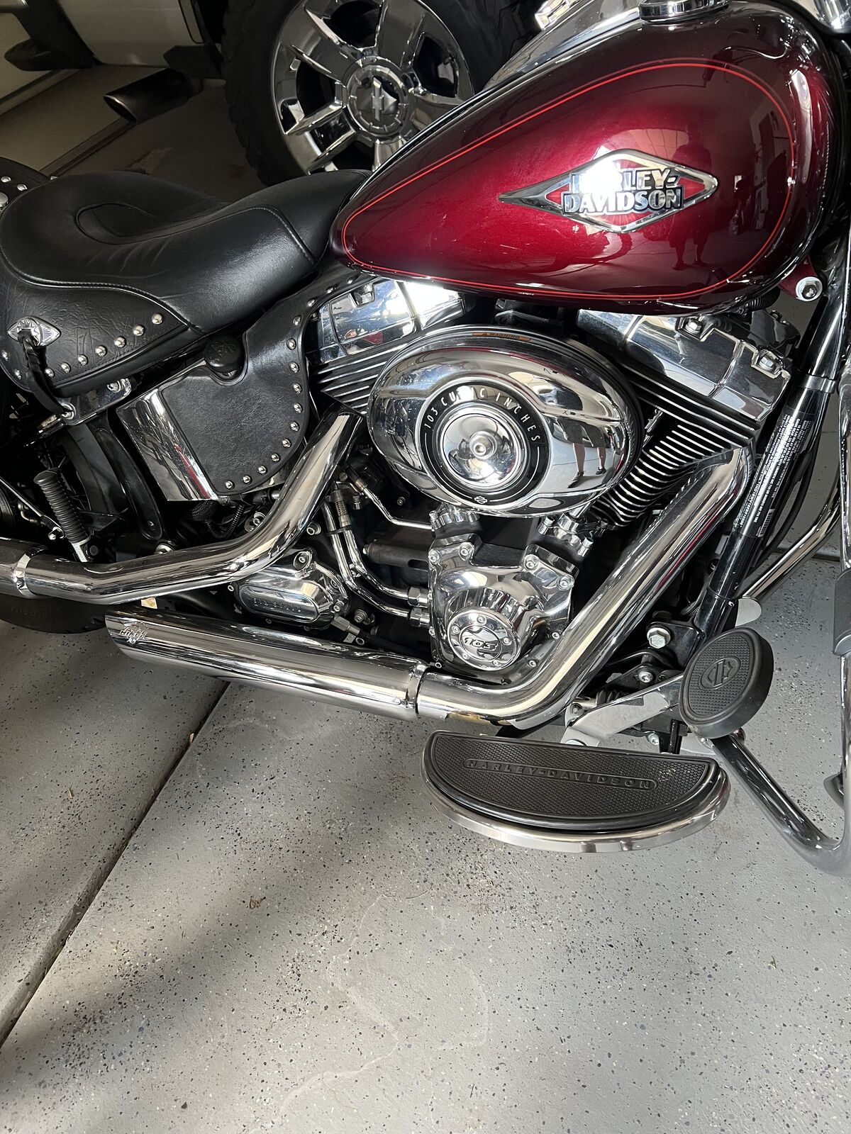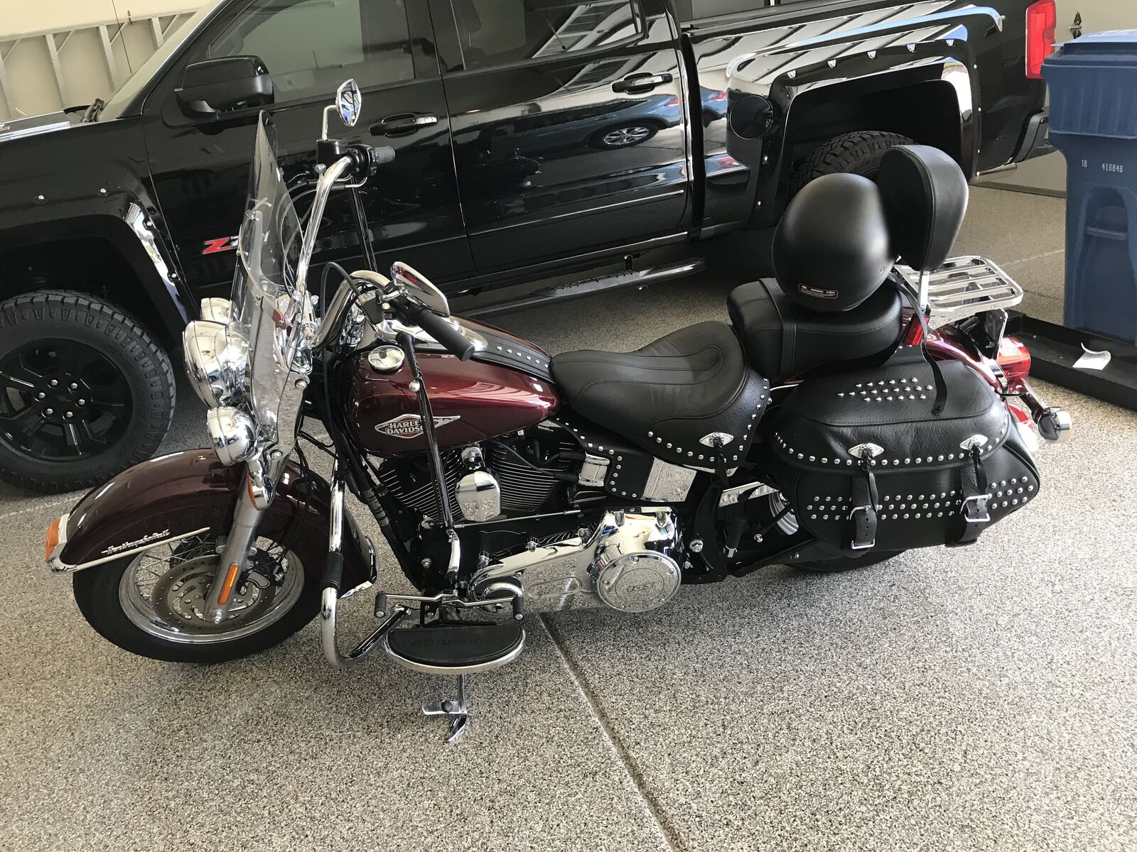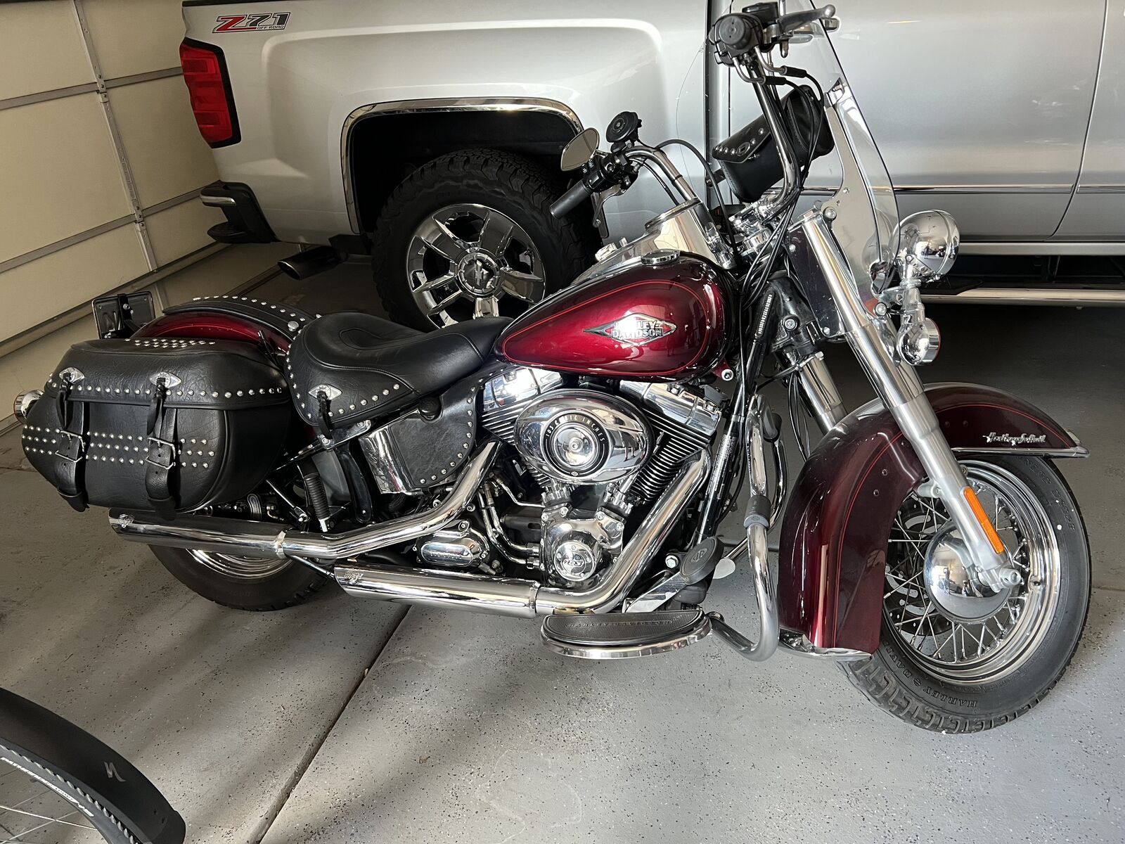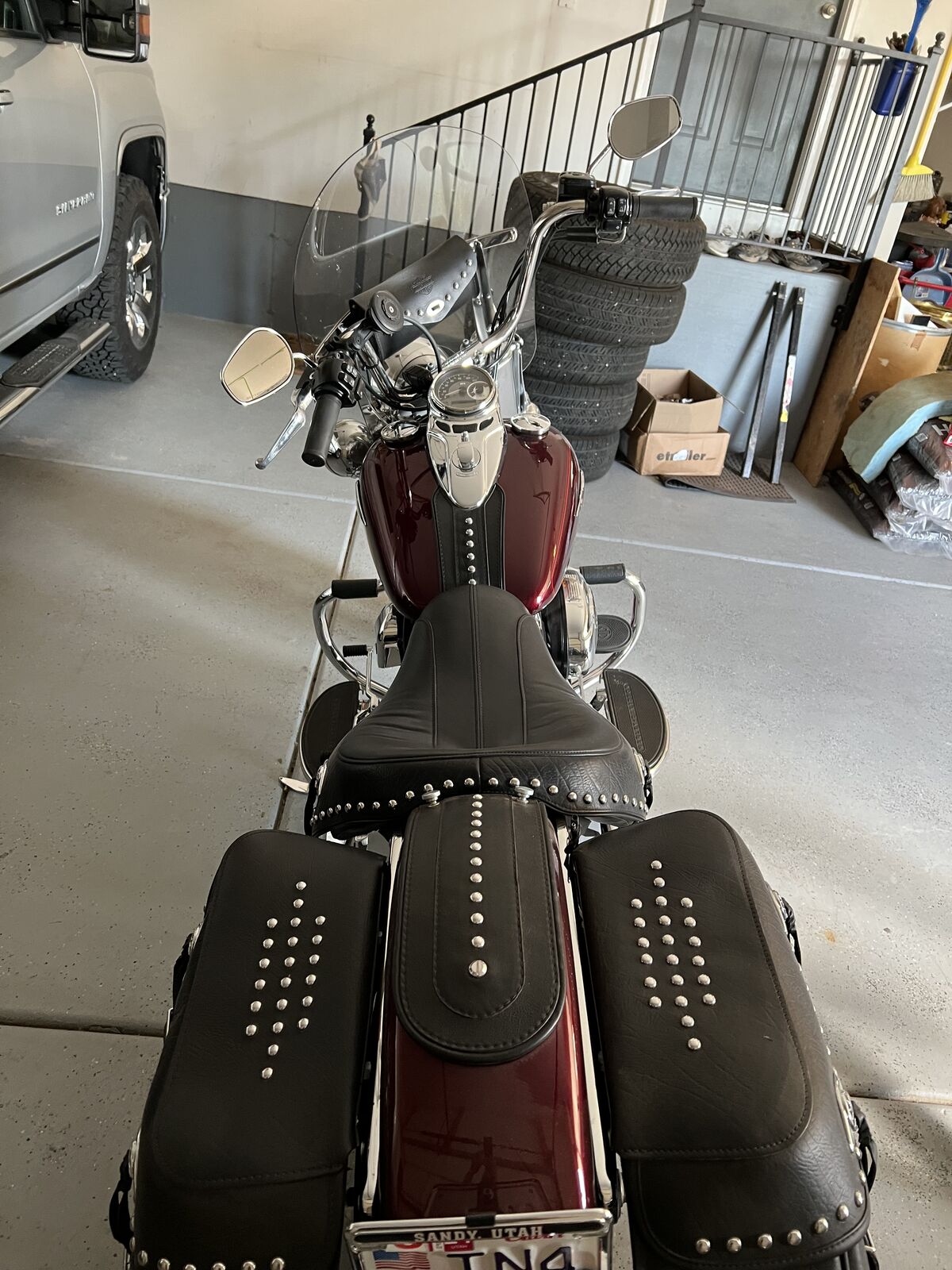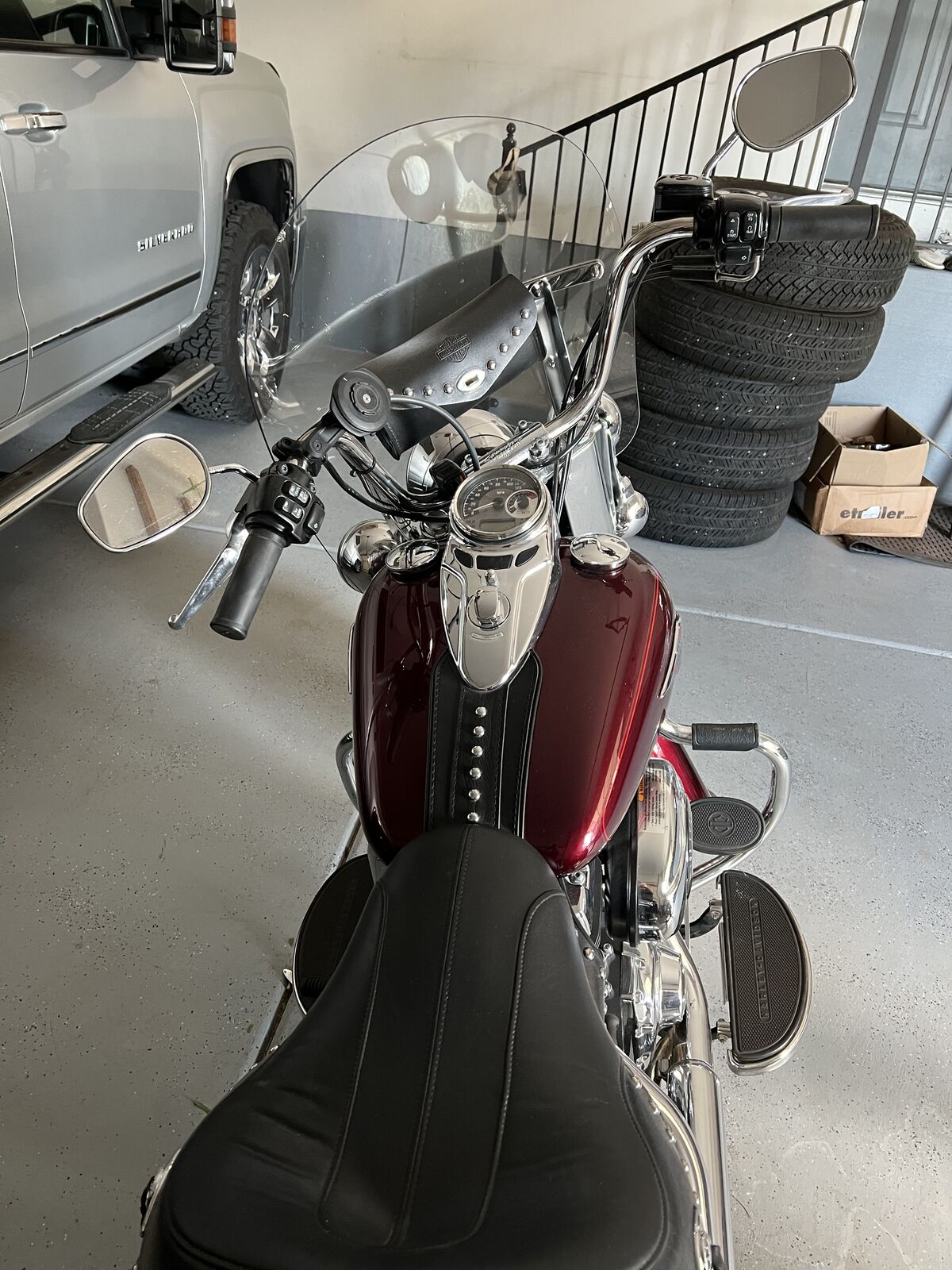 2014 Harley Heritage Soft tail with ~ 8300 miles and in excellent shape. Vance and Hines pipes, Vance Fuel Pak tuner. It has a bib on where the rear pillion and back rest go. It comes with the back rest also has a cargo carrier and pillion. The leather bags are in excellent shape and it has a windshield bag. LED headlight with the upgraded speed odometer tachometer combo also has a wireless key fob security system. Also comes with stock pipes. Make me an offer.