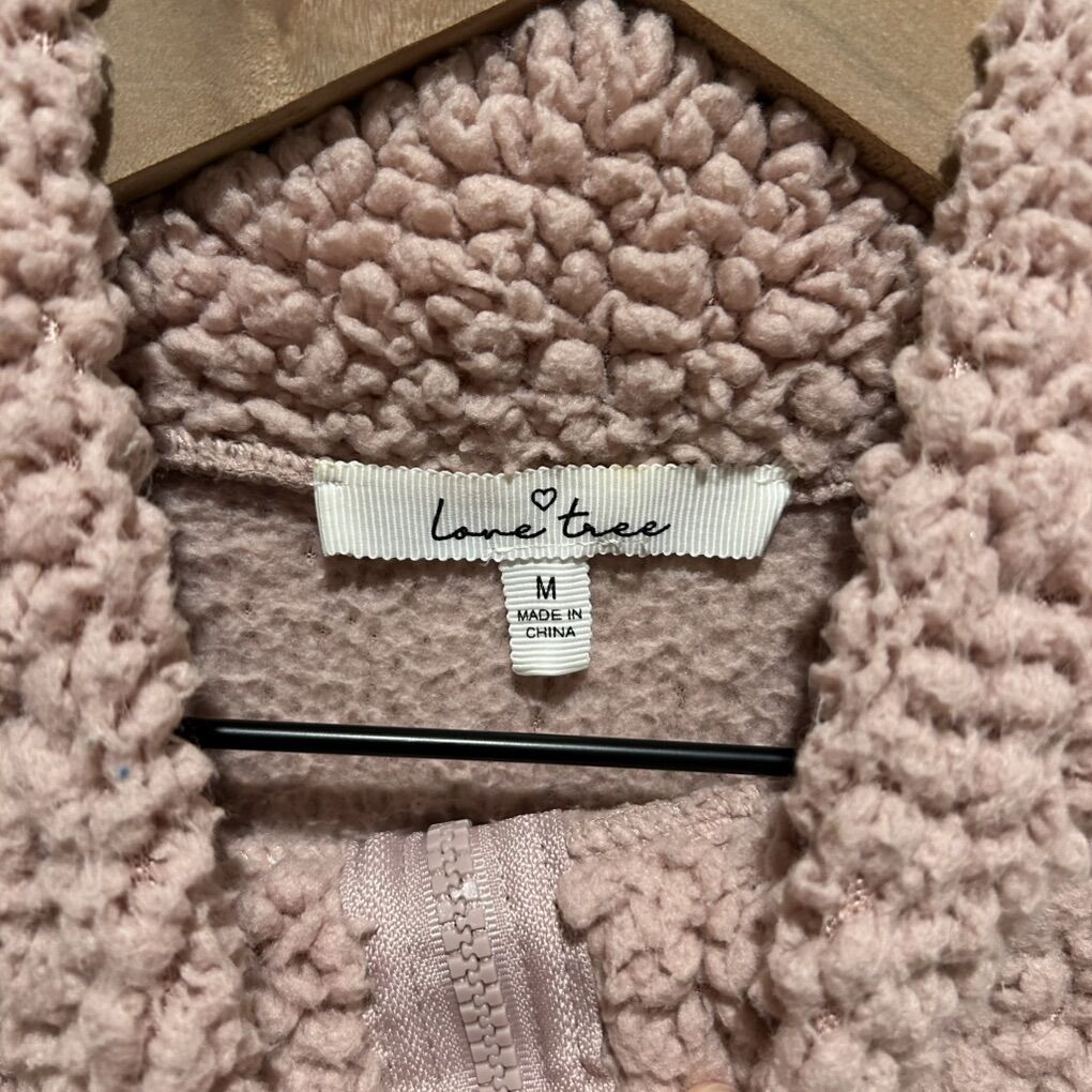 Love Tree Blush Light Pink Sherpa Fleece Pullover Quarter Zippered Front Sweatshirt Jacket - Women’s Size Medium - long sleeved - good condition - pre-owned. OS1