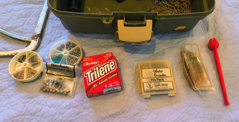 Plano tackle box with some tackle Plano's classic three-tray tackle box features a cantilever tray design that extends open to showcase the contents. A sturdy collapsible handle makes the case easy to carry and store while the brass bailed latch tightly secures the lid, keeping items protected and organized.