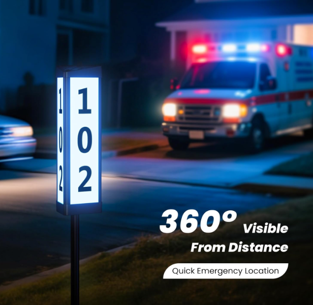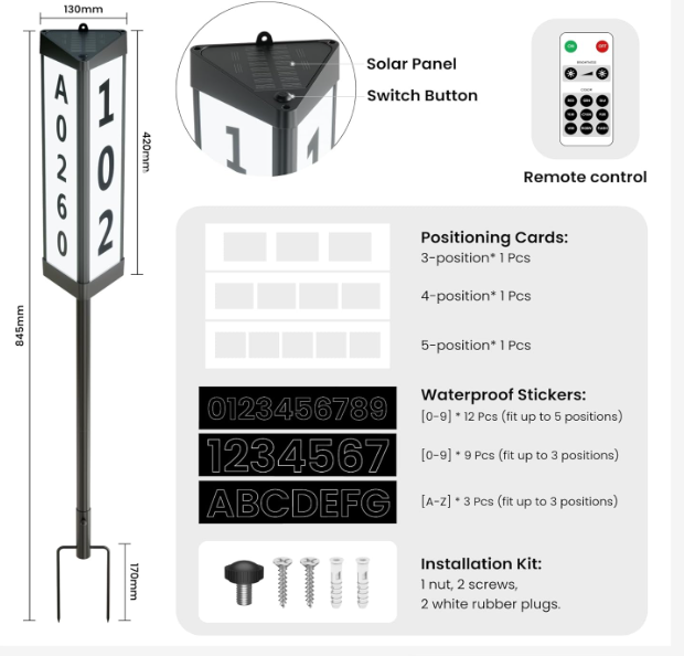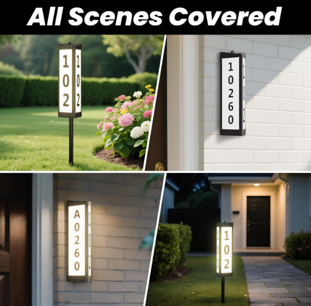 ZelleEfficient Solar Charging & Long-Lasting Battery: Equipped with a high-efficient solar panel and 2000mAh battery, this solar address sign delivers over 8 hours of nightly glow after full charging. Ideal for outdoor use, it ensures address numbers stay illuminated reliably, saving energy while keeping your house number sign bright all night.