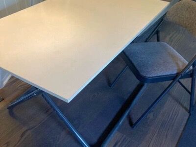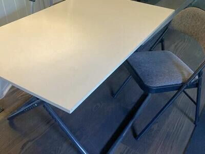 Has some dings and scratches on both table top and legs, indicative of use and age, but overall, in very good usable condition