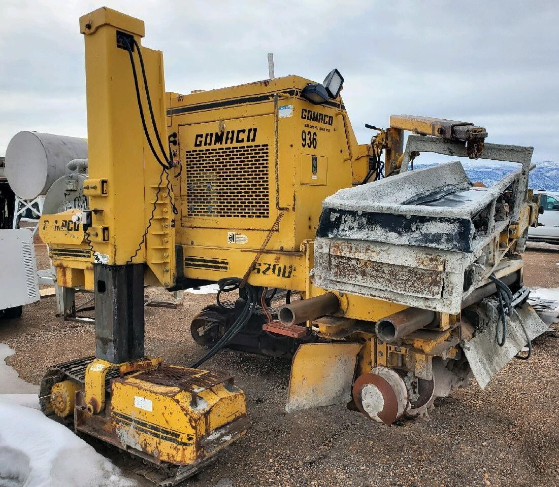 This Gomaco GT-6200 is a high-production slipform paver and trimmer, perfect for roadwork, curbing, sidewalks, and site prep. Unit is equipped with a crawler track system, hydraulic side-mounted trimmer head, and full analog hydraulic controls – ideal for contractors who prefer non-computerized reliability.