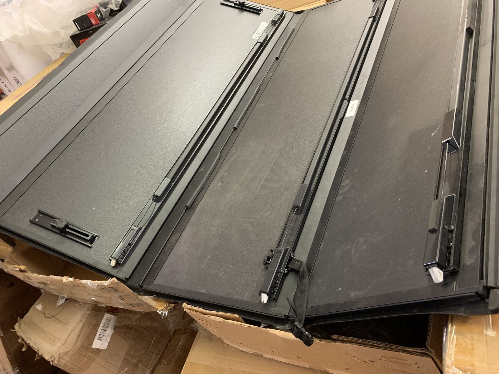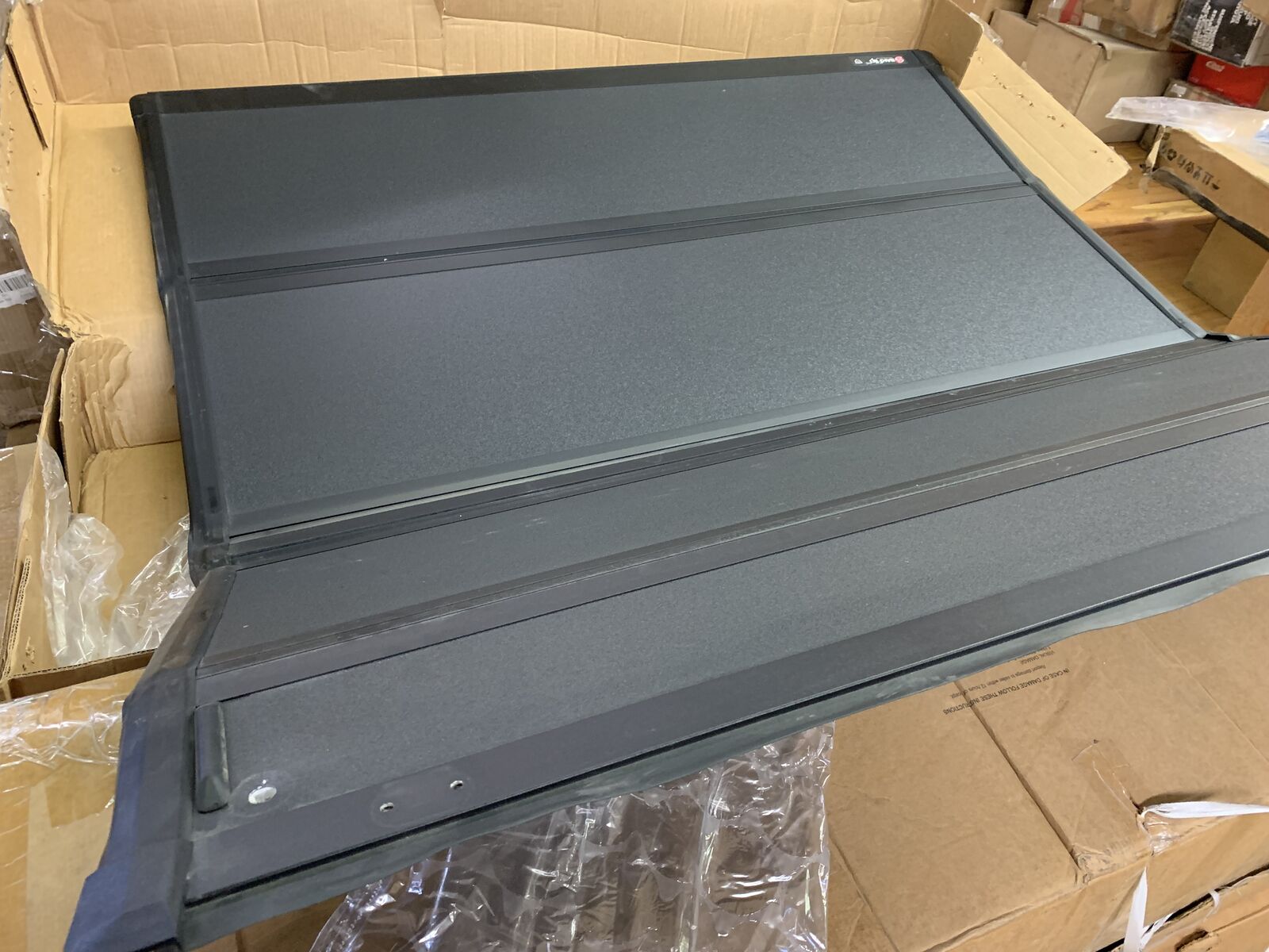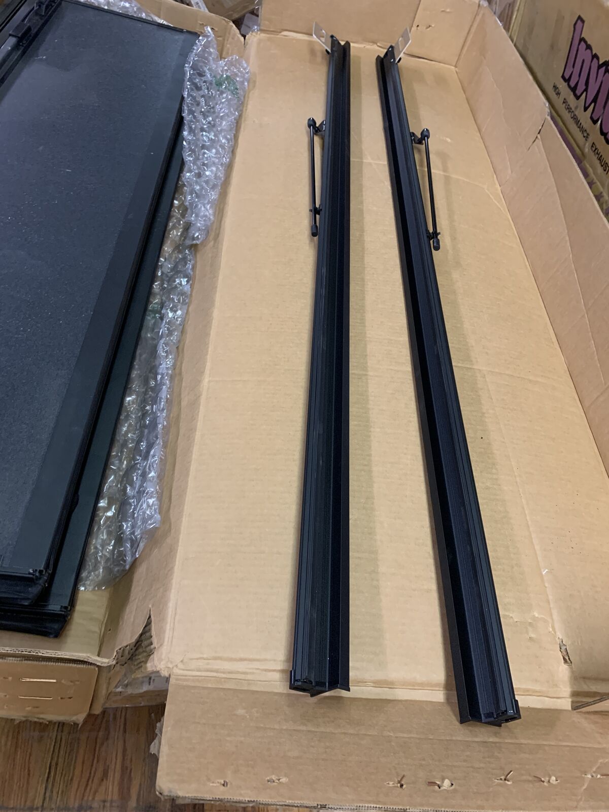 $550 - A little interested with this cover. The actual folding cover is used but the rails and hardware bags were not opened. One of the side rails is bent and one of the clips is broken.