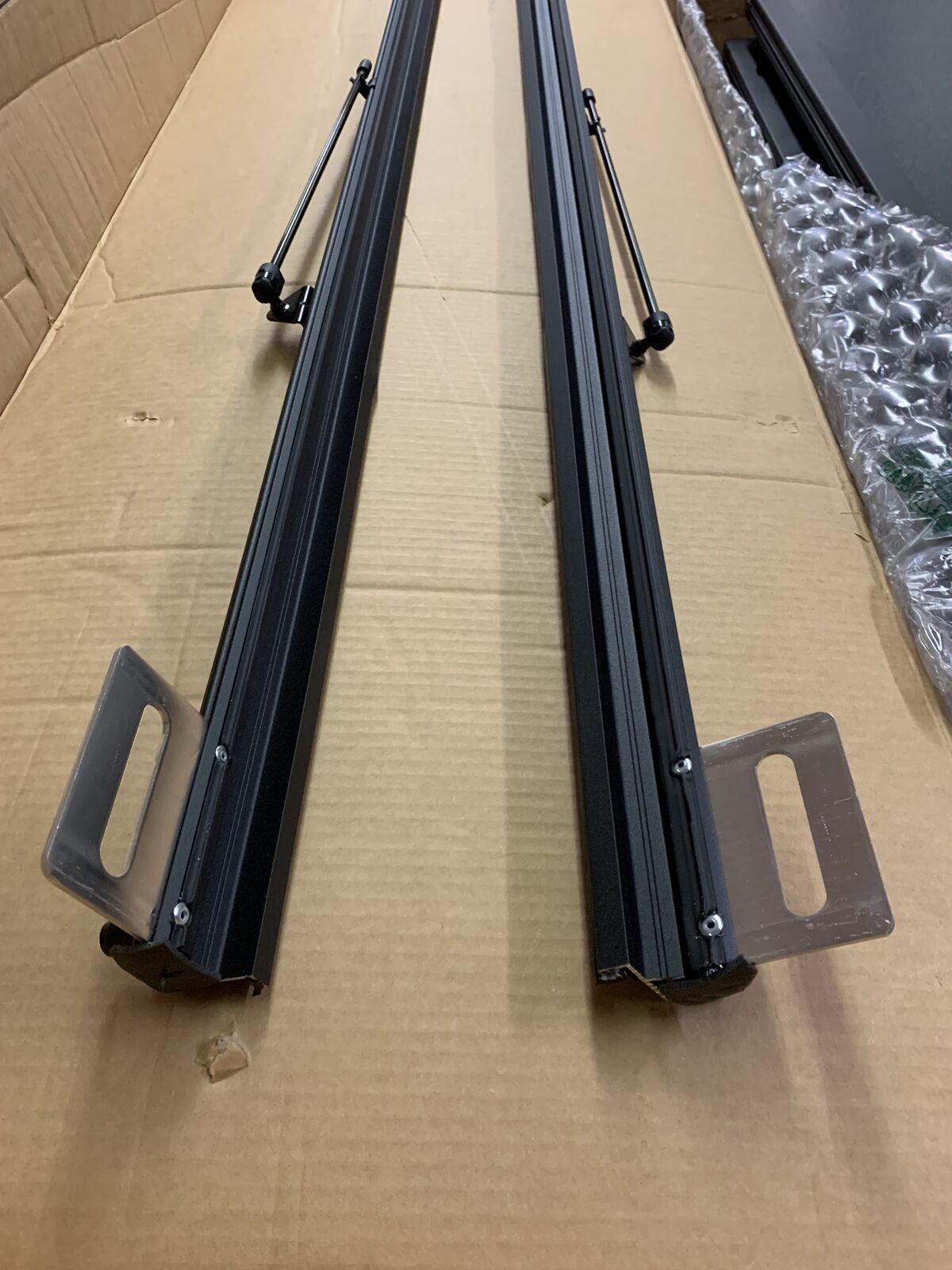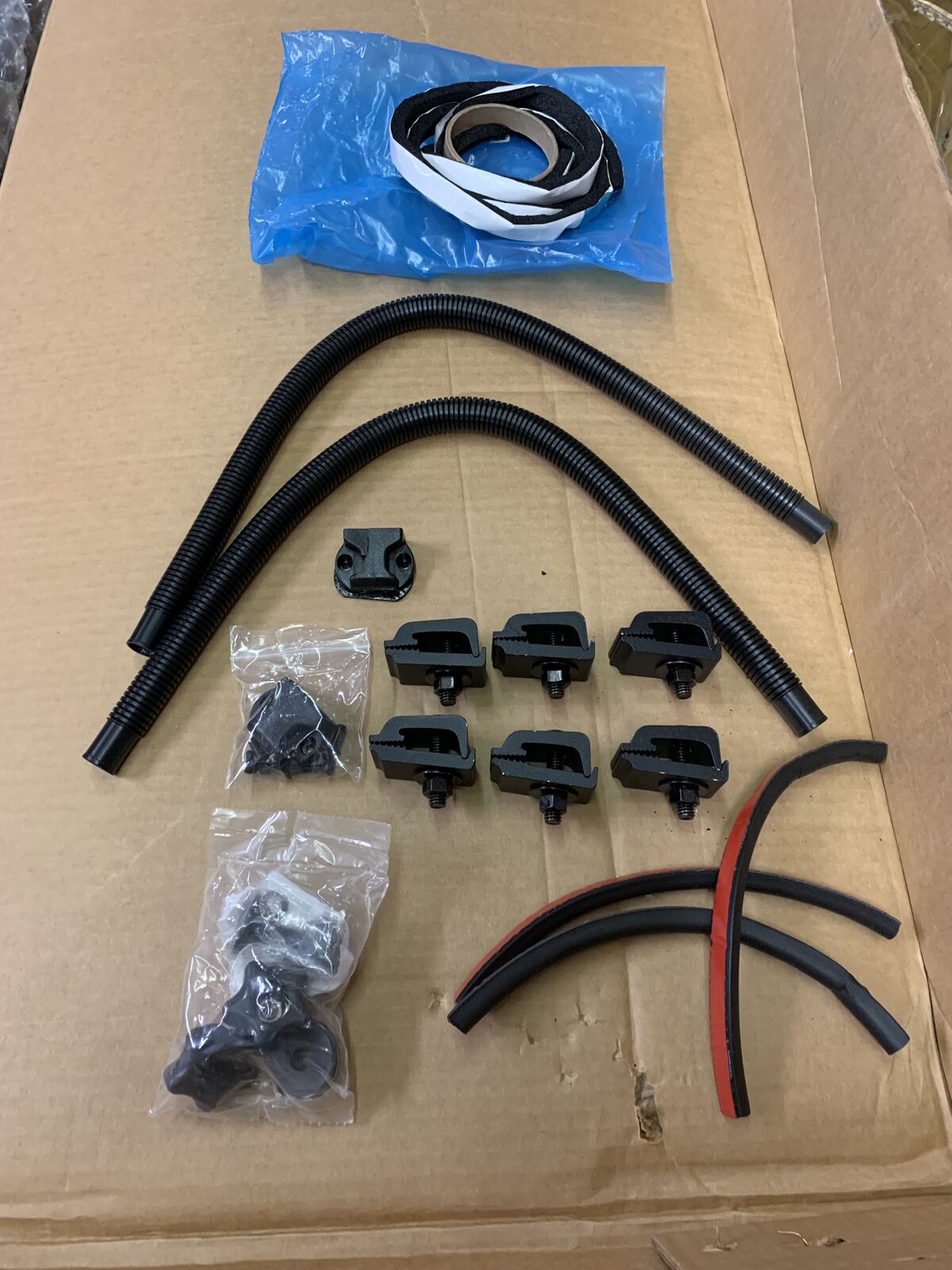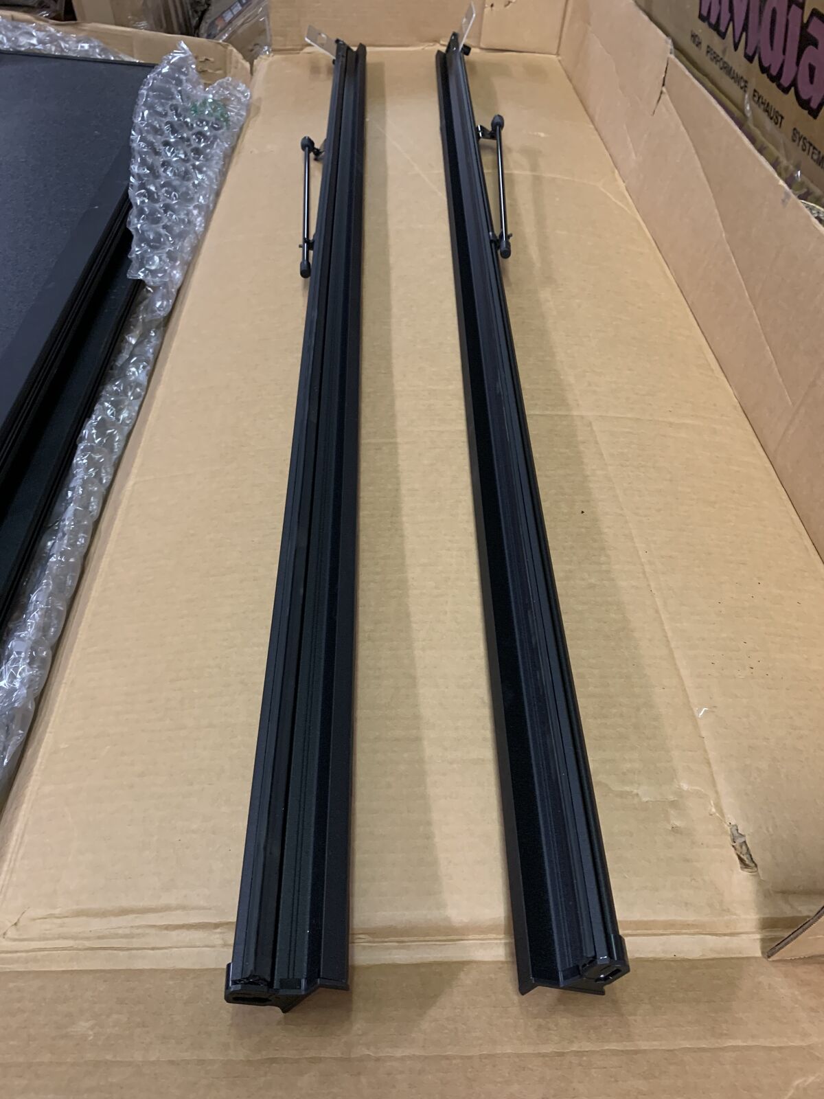 $550 - A little interested with this cover. The actual folding cover is used but the rails and hardware bags were not opened. One of the side rails is bent and one of the clips is broken.