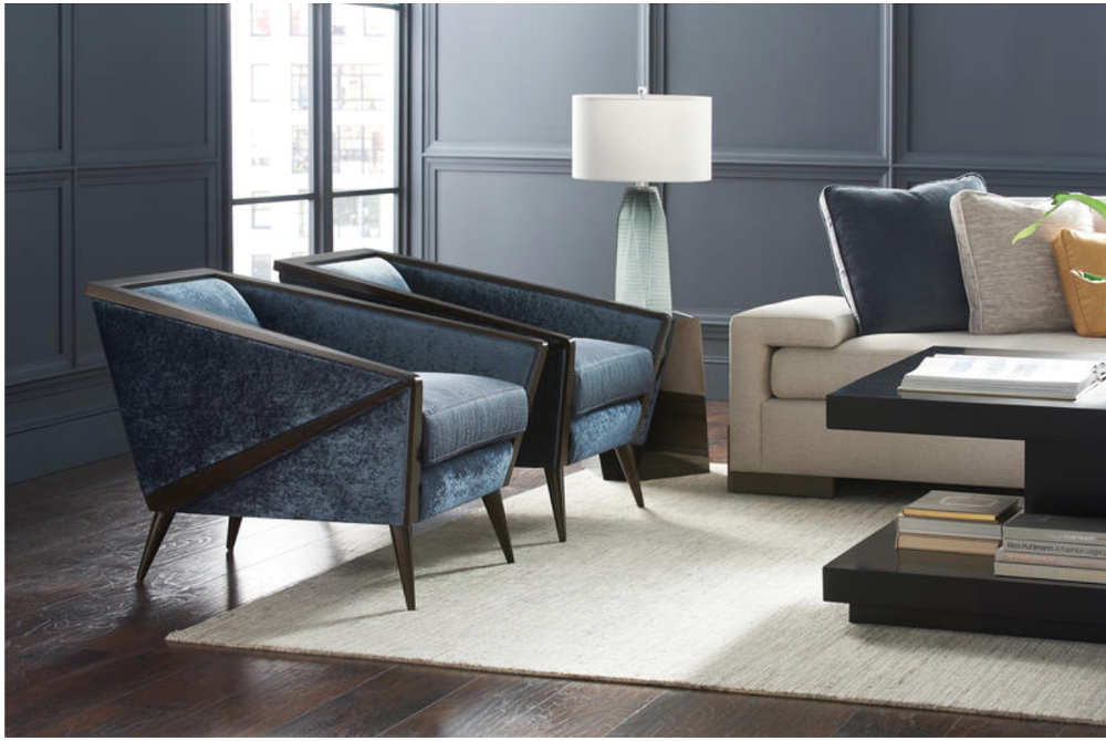 Inspired by the crisp folds and simple beauty of origamy, loose seat cushion, tight back, angular wood frame. accent pillow not included, original price $2360 each one, we have two chairs for $1180 each