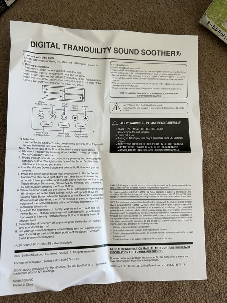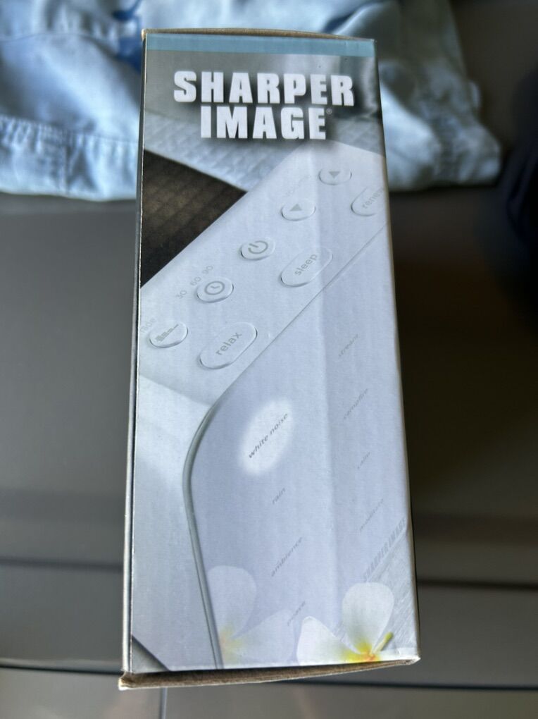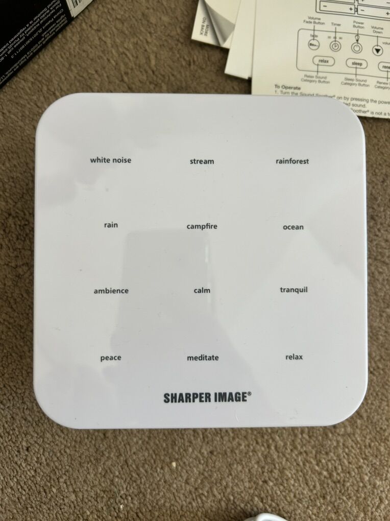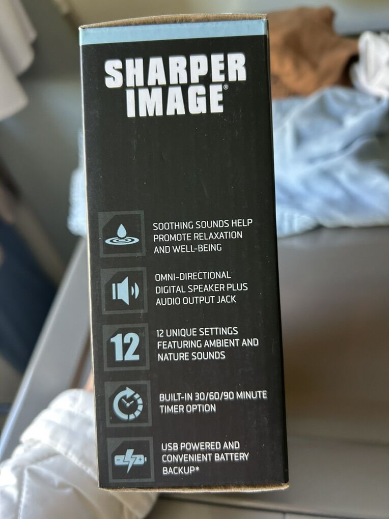 VenmoNew in the box from Sharper Image Digital Tranquility Sound Machine. Includes 12 different types of sounds with digital sleep timer and gradual fade. Sleep timer for 30, 60, and 90 minutes. Clean compact design. Looks great, sleek. Easy to use. Smoke free. Cash or Venmo. Pick up from Alpine
