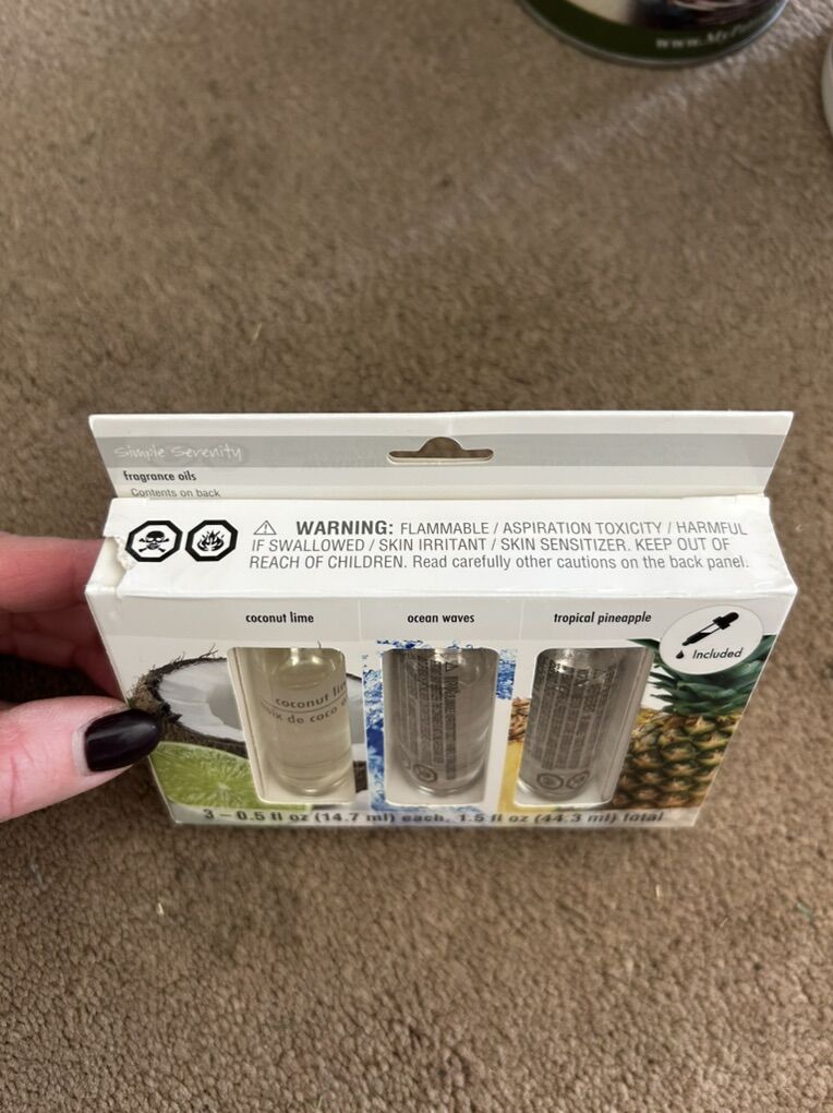 VenmoIn like new condition, simple serenity, three pack of essential oils with dropper. Open to smell but never used. They were extras from a craft project. Two vials of Tropical Pineapple and one vial of Coconut Lime. Clean smoke free home. Cash or Venmo. Pick up from Alpine.