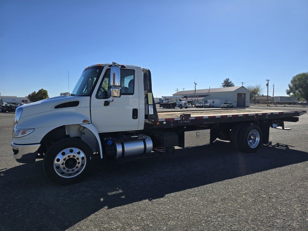 2015 International 4300 roll back tow truck, 240 horsepower 6.7L Cummins diesel engine, Allison automatic transmission, 116,000 miles, 3,800 hours, 26,000GVW, exhaust brake, Jerr-Dan 21 foot bed, hydraulic winch, front container locks, 15,000 pound capacity, good tires, former fleet vehicle 208-734-3434