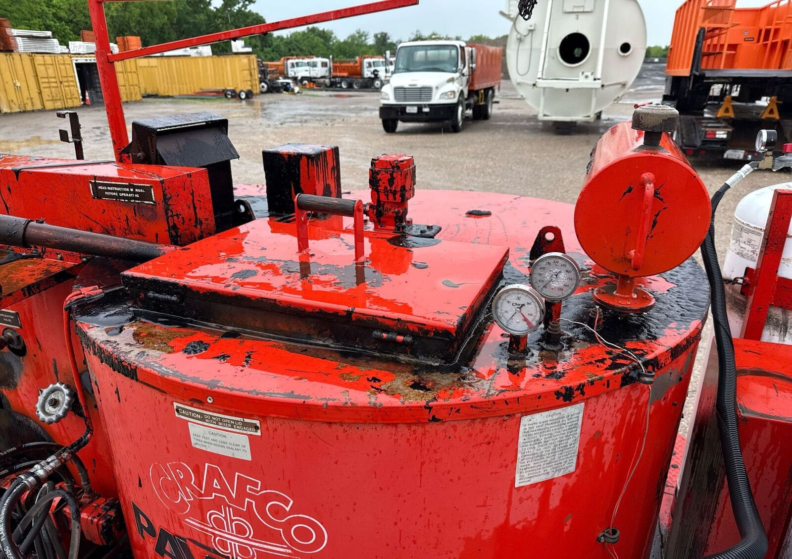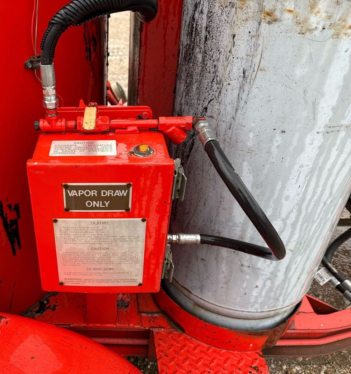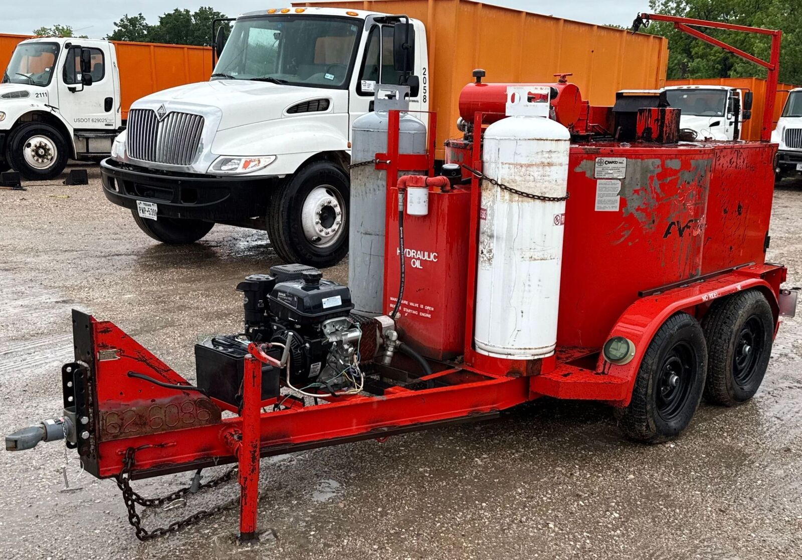Unit includes a reversible hydraulic pump, heated hose and wand, rear operator station, temperature control dial, and dual propane bottle setup. Fast heat-up time and efficient sealant circulation makes this one of the most reliable machines in its class.