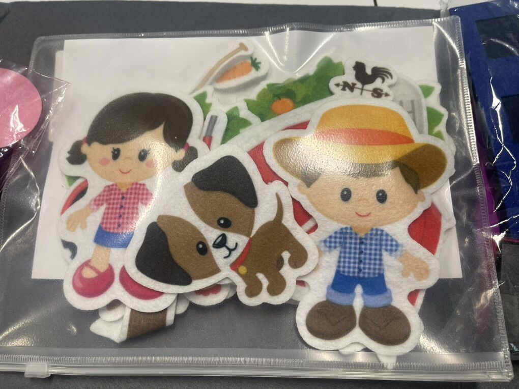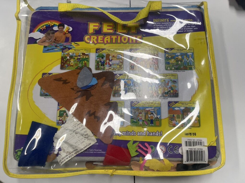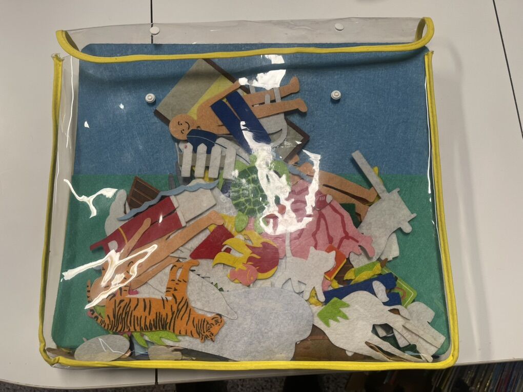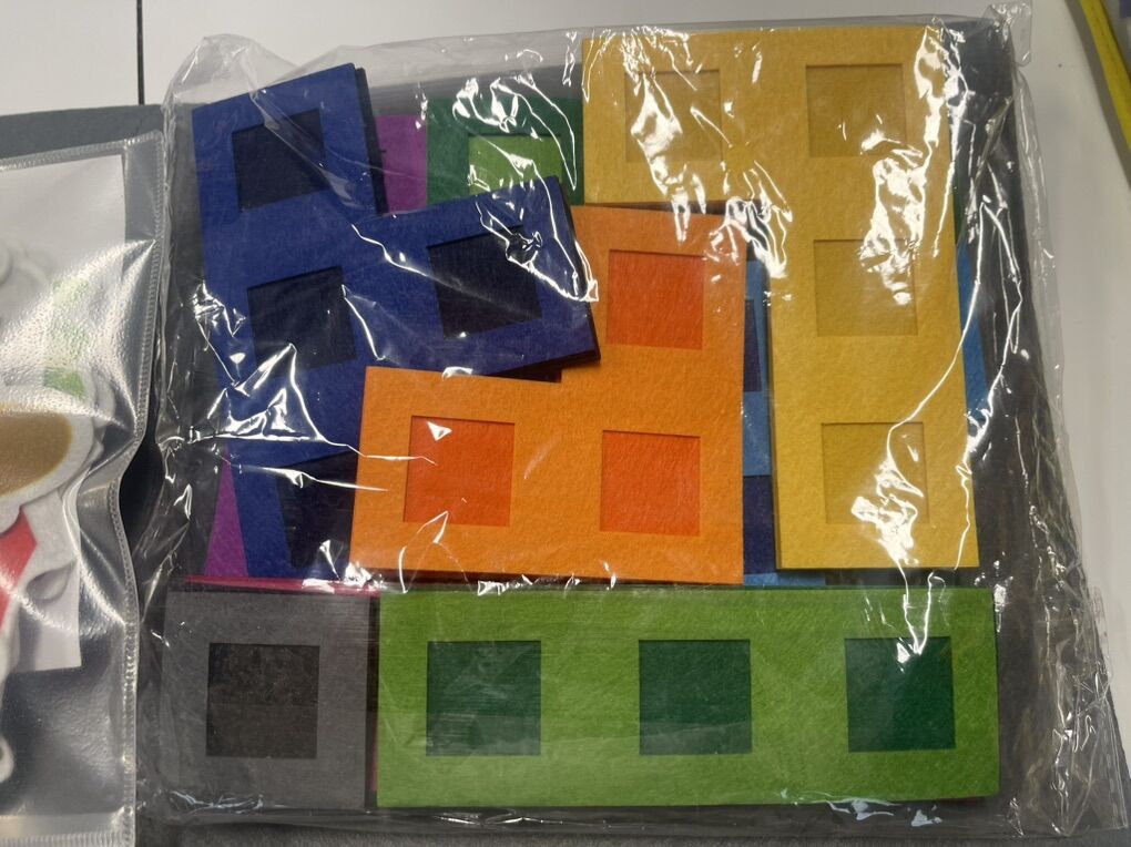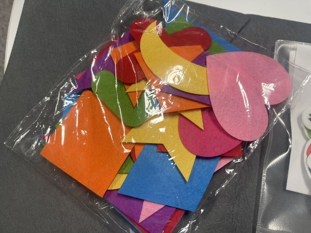 VenmoLarge gray felt background with packages of shapes and people/animals.