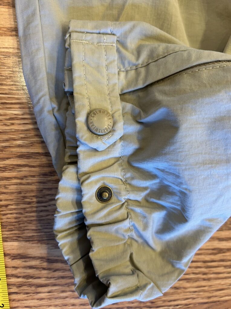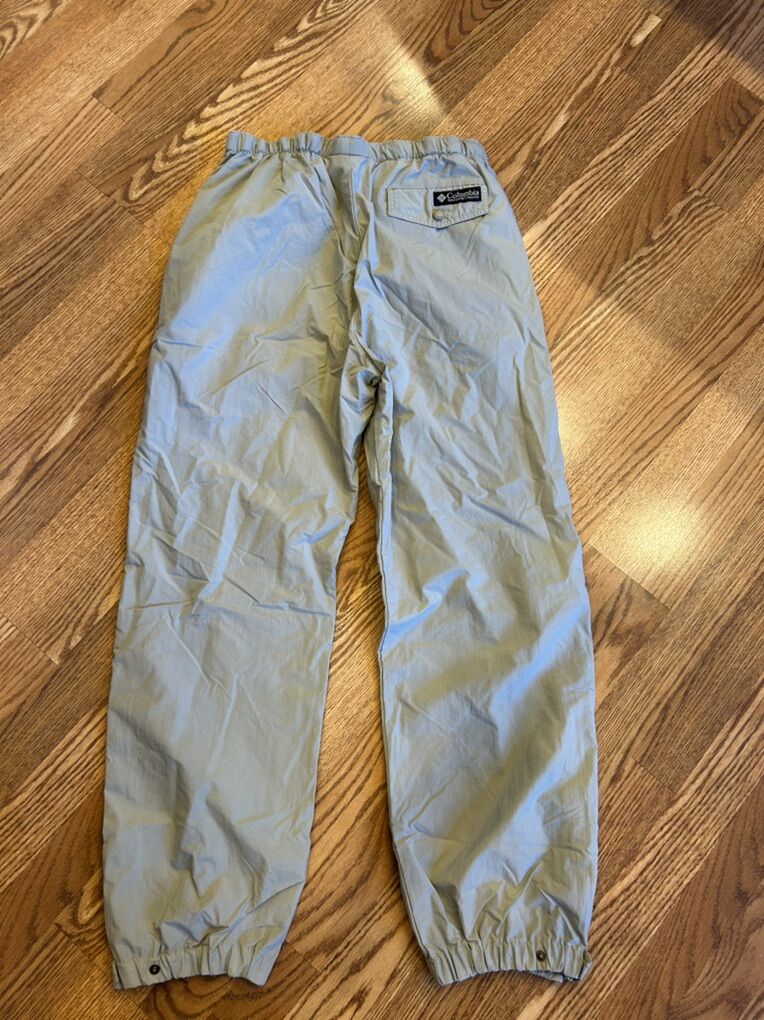 VenmoIn excellent condition women’s size medium Columbia, sportswear tan, khaki parachute pants with the elastic waist and elasticated and snap cuffs. Variety of ways to wear these. Perfect for layering or wearing alone. Clean smoke free. Cash or Venmo. Pick up from Alpine.