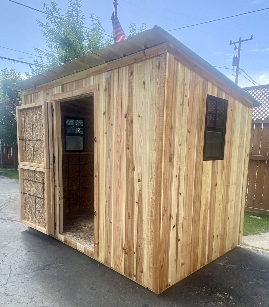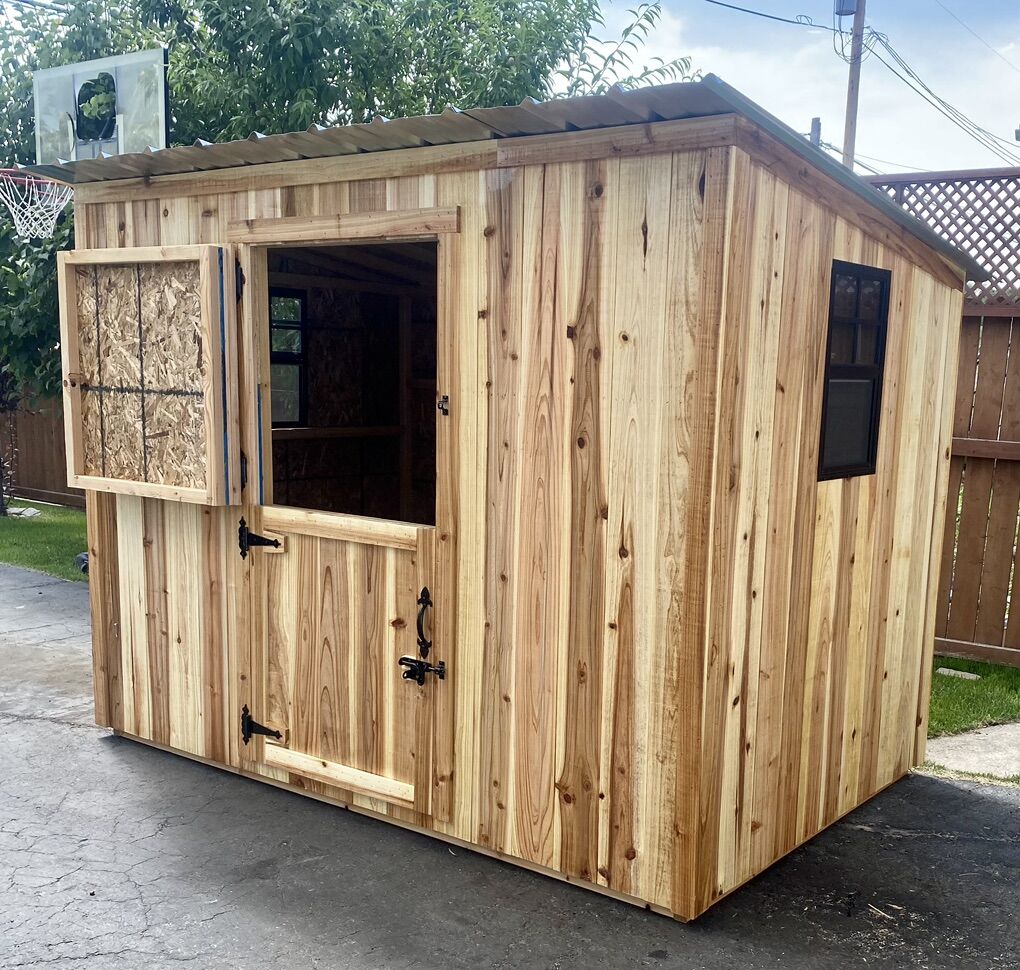 New 8x5x6 cedar wood shed/animal shelter. Heavy duty shed with double wooded walls, double door for animal use(or I can customize to a single door). Also metal roof and polyurethaned. Also willing to customize it to your liking. Located in Riverton. Perfect for goats/pigs/mini horses ect! Even storage shed!