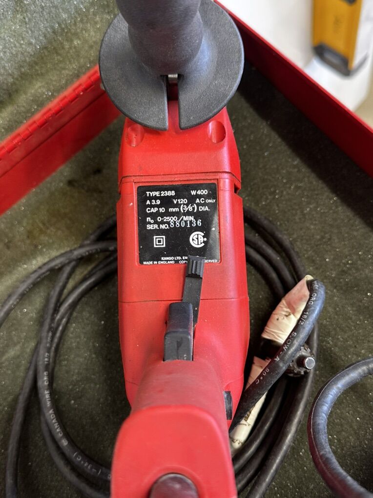 CORDED 1/2” CHUCK, DRILL ONLY. OR DRILL AND HAMMER AT SAME TIME. BRAND NAME IS KANGO. WORKS GREAT, NICE METAL CARY CASE. USED VERY LITTLE.
