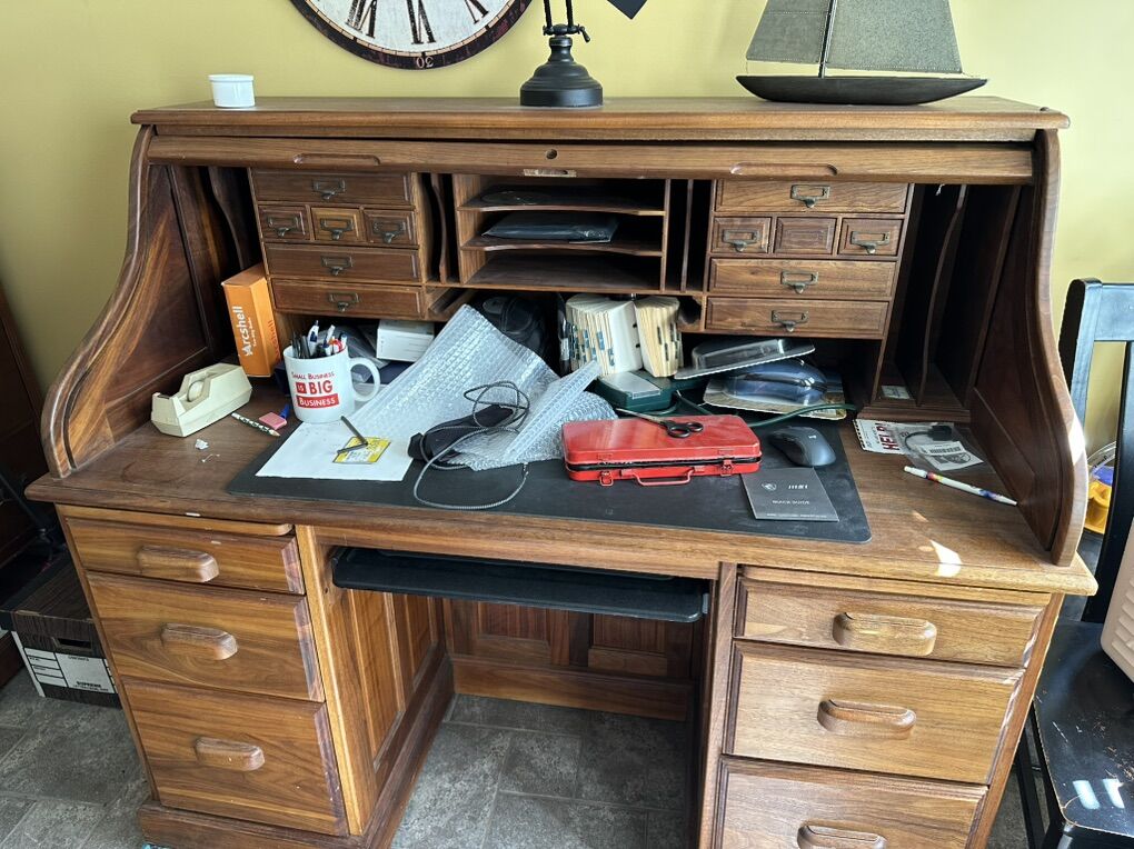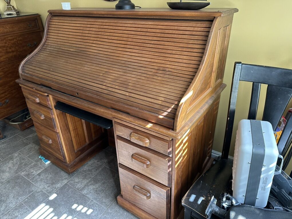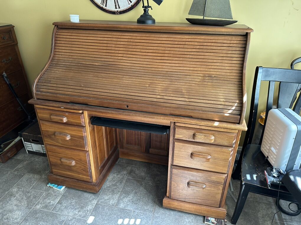 ApplePayCustom made. Solid walnut roll top desk. It cost over $5000 to make originally. Beautiful. Has sliding keyboard shelf. Asking $2000. OBO. Call anytime. Can be used as a modern workstation. The condition is like new.Call anytime. My cell phone is 801-319-2250. You can also text anytime. I live in Orem. My business is in Pleasant Grove. My name is Robb.