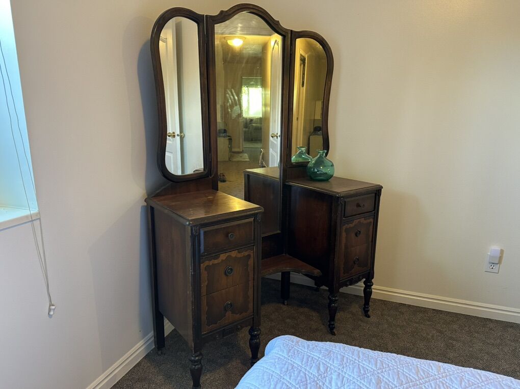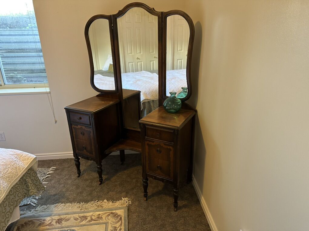 VenmoVintage beautiful queen bedroom set. Asking $800. The furniture is in outstanding condition for its age. Look at the photos close up and you’ll see beautiful wood inlay. Build in the 30s or 40. Includes a tall boy, dresser vanity with drawers and mirror. Headboard. Includes a modern Nightstand. His bedroom set is strikingly beautiful in every way. It isn’t fantastic condition given us age and would not need refinishing anytime on my cell at 801 319 2250. You can text me anytime. I live in Orem. My business is in Pleasant Grove. My name is Robb.