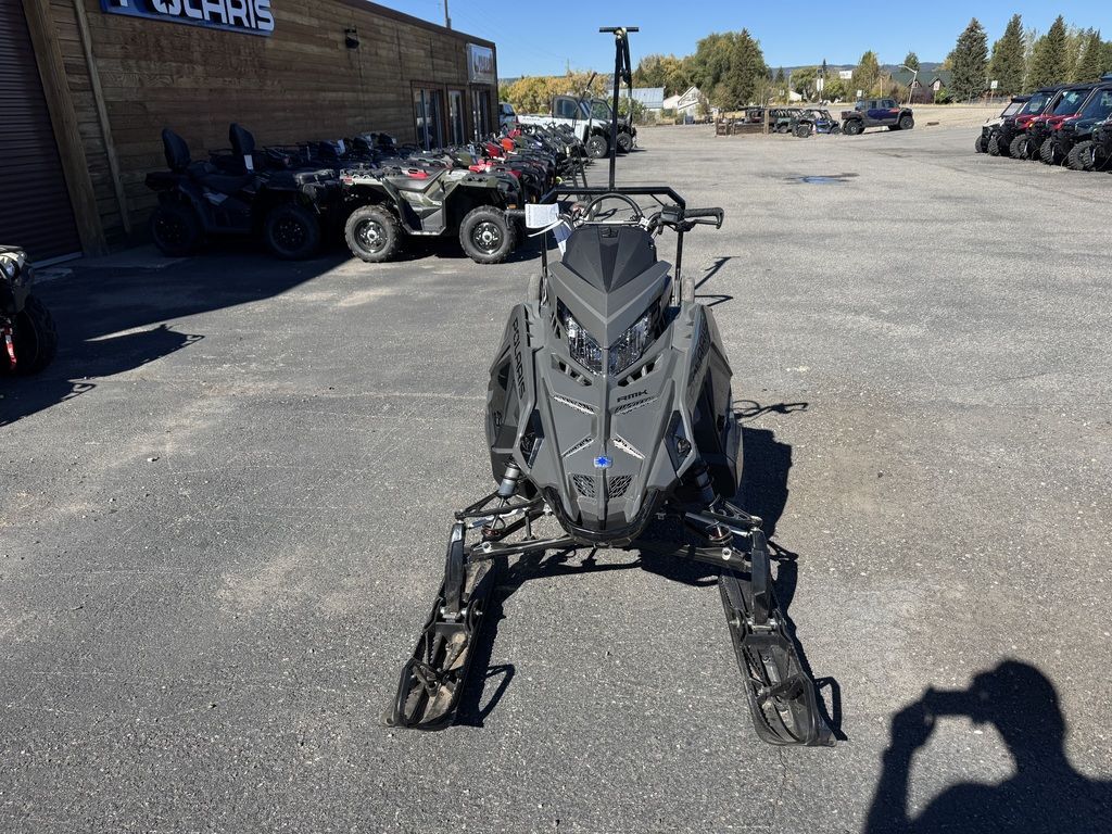 Stop by or give us a call for OTD pricing! Comes with 7s display and manual start 2025 Polaris® 9R PRO RMK 155 Shadow Gray / Gloss BlackUNMATCHED PRECISION IN THE TECHNICAL TERRAIN.The PRO RMK delivers balanced and precise performance in the steep and deep.Features may include:THE BEST MOUNTAIN SLED JUST GOT BETTER - AND EVEN LIGHTERThe PRO RMK delivers instantaneous lift and lightning fast response. 2025 Boost and 9R PRO RMK models are up to 7 lbs. lighter and have a redesigned throttle system, 1" lower seat, improved running board clean-out, and a lightweight headlight for improved connection and control to deliver the best RMK experience yet.Rider First Design. Effortless Control.The Matryx RMK platform includes a narrow seat, tank and console that provide improved rider connection to the sled while the narrow bodywork enables more agility and less drag in the snow. The new seat design and running boards further improves rider mobility on the sled while the new throttle system helps you feel connected to the sled on every ride.Maximum Lift. Maximum Precision.The PRO RMK Rear Suspension features a balanced, optimized geometry and rail design to deliver power directly to the snow to pop up and drive forward. Rigid design allows for precision to hold lines in the most technical terrain. Available in 155 and 165 lengths. Choose Your Power.With three engine choices from the Patriot Family. Choose the legendary durability and relentless acceleration of the Patriot 850, or the Factory Mods… the ultra-responsive Patriot 9R or turbocharged Patriot Boost.ULTIMATE CONTROL IN THE STEEP & DEEPWhen we build a sled, we build it to be the best sled for each unique riding style, not simply a different sticker or name. Every part is scrutinized to deliver what you need as a rider. For 2025, we've made refinements to deliver an even better riding experience in the backcountry.Ultimate ControlThe RMK Matryx Slash platform features a next-level rider interface and slashed, tapered tunnel. Combined they deliver minimized drag and maximum controlLightning-Fast Response. Puts The Power Down.QuickDrive is the lightest drive system in the industry and produces the lowest inertia for optimum response. Choose between the 325 Series 9 Track for instant traction and forward drive in deep snow or the 275 Series 8 track for versatility and traction in varying snow conditions.Precise Steering. Confidence Inspiring.The RMK React Suspension lets riders effortlessly initiate sidehills and experience less fatigue with the most predictable ride. It includes a 36"-38" stance, a sway bar designed for predictable handling, and forged a-arms and spindles optimized for strength and durability.Lightweight And Precise.Choose from two shock options. Ultra-premium Walker Evans Velocity Shocks are the best of the best in various mountain conditions. They feature remote reservoirs for increased oil capacity to ensure all-day performance and durability, along with compression adjusters to dial in the ride. The Walker Evans Lightweight Monotube Shocks are standard and feature a simple and durable one-piece design.INDUSTRY-LEADING TECHNOLOGYPolaris sleds lead the way in technology that enhances your ride. Technology built to help you plan rides, track your group, keep your sled cool in tough conditions, and see your way from dusk til dawn.Built To Stay Cool And Light.The shortened centralized cooling system on the RMK Matryx Slash platform features reduced dry weight and delivers improved cooling capability while reducing snow and ice build up. Reversible scratchers will help to keep your Patriot power running within spec.